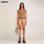SMFK 2506 暴风褪色蚕丝运动Tee(手工染色)/野马棕