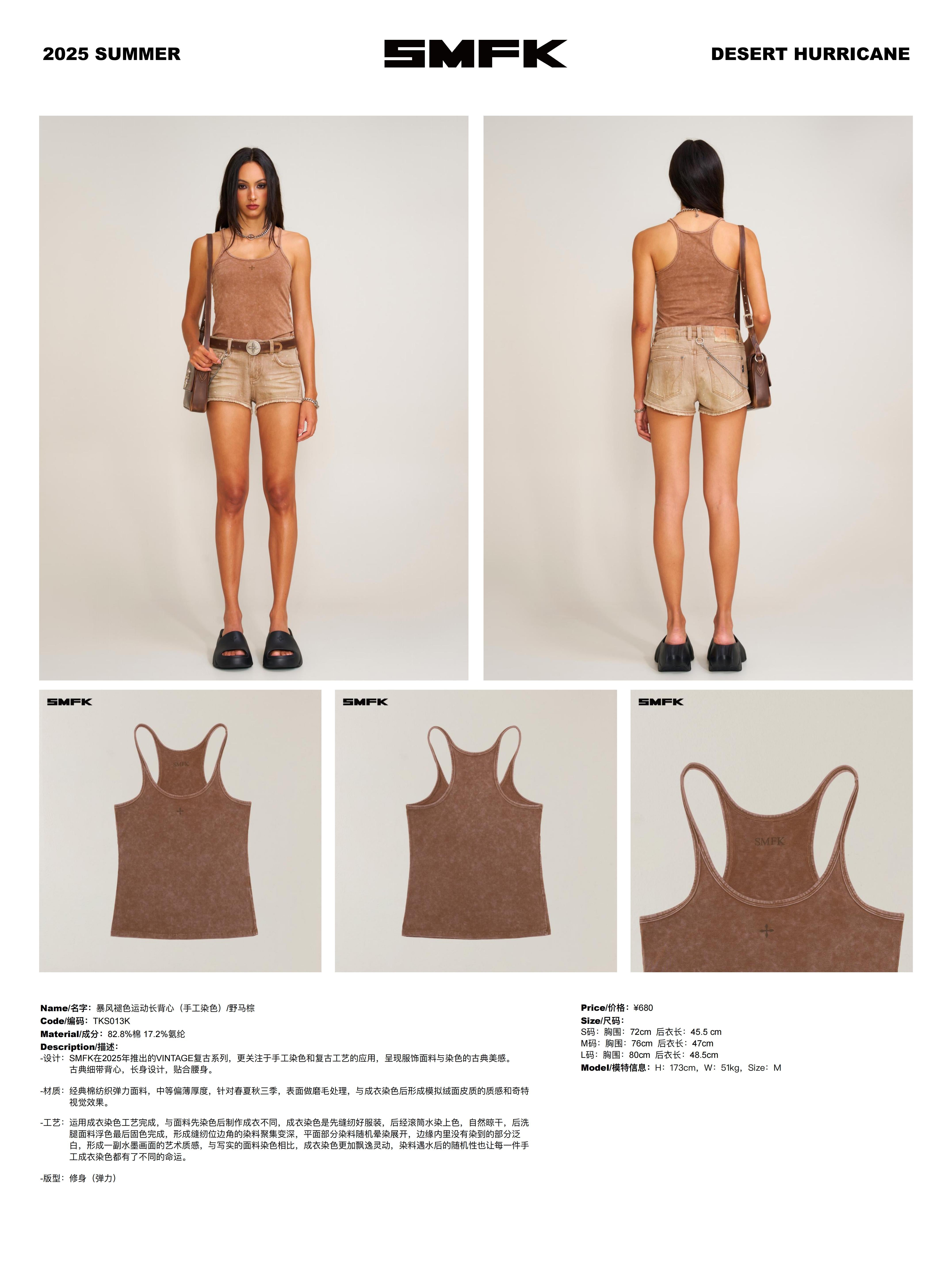 SMFK 2506 暴风褪色运动长背心(手工染色)/野马棕