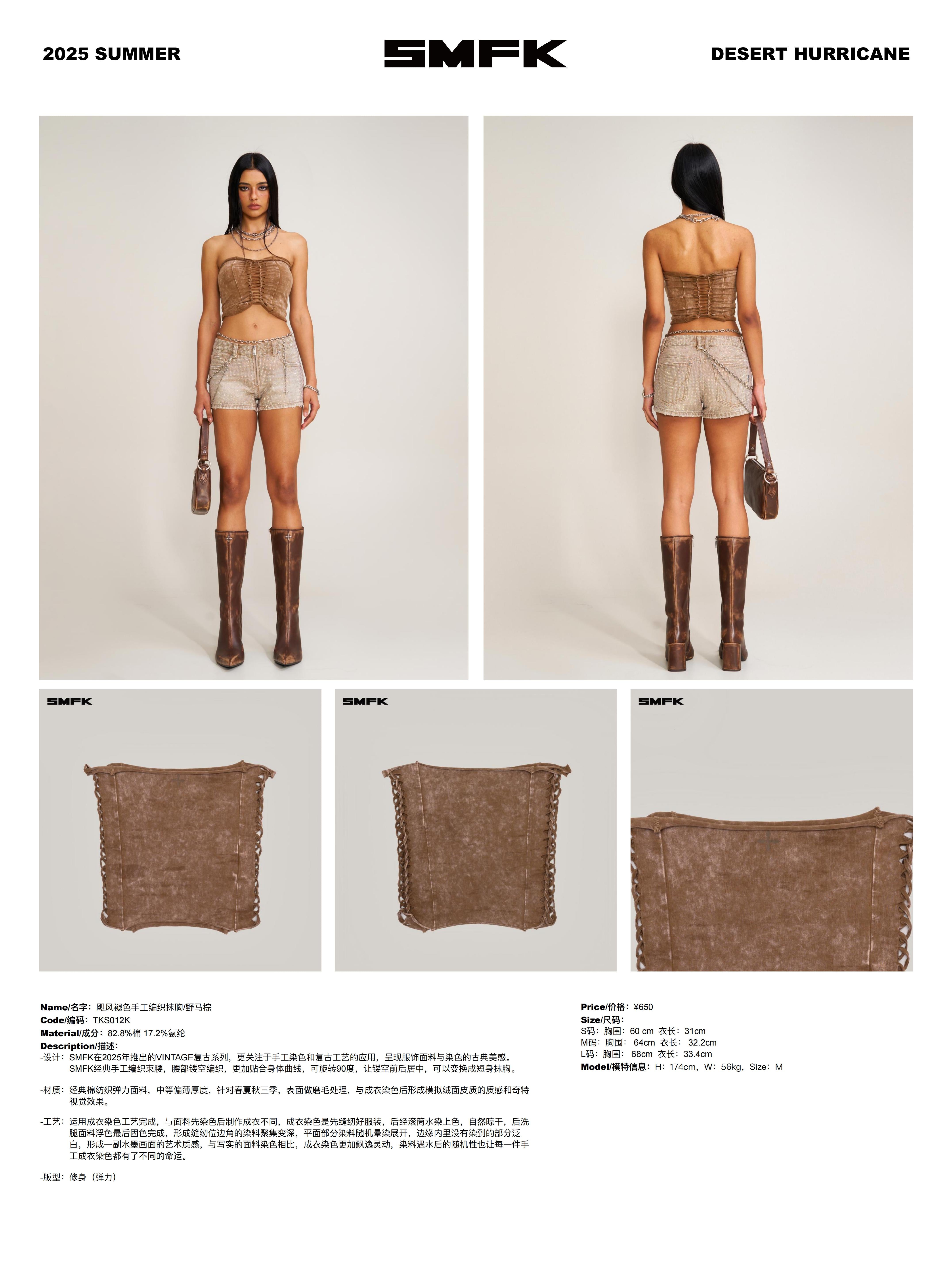 SMFK 2506 飓风褪色手工编织抹胸/野马棕