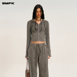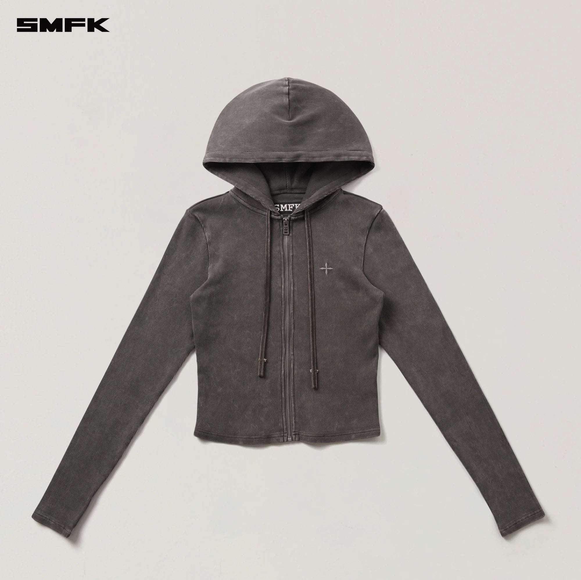 SMFK 2510 野性复古修身拉链帽衫 湮灭棕