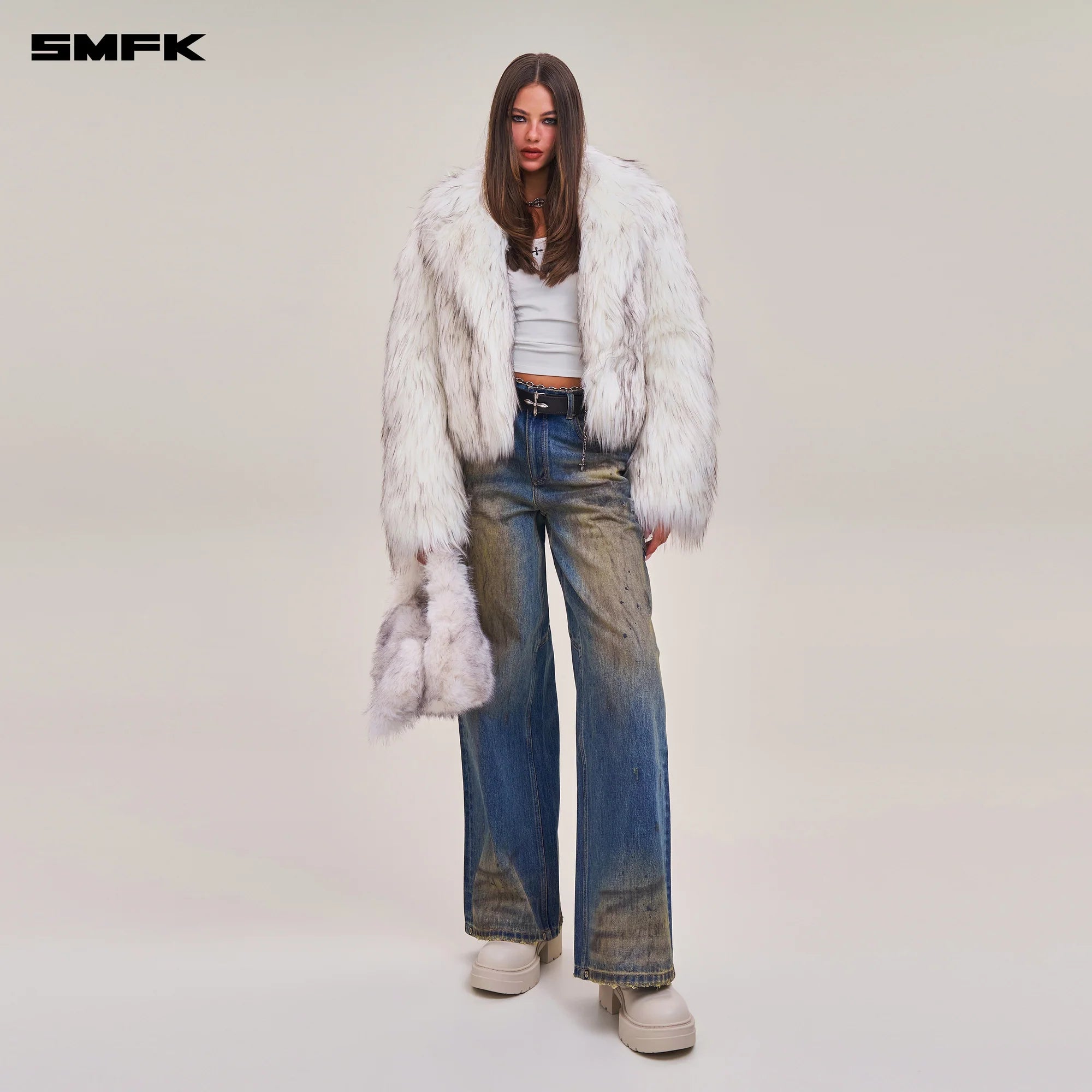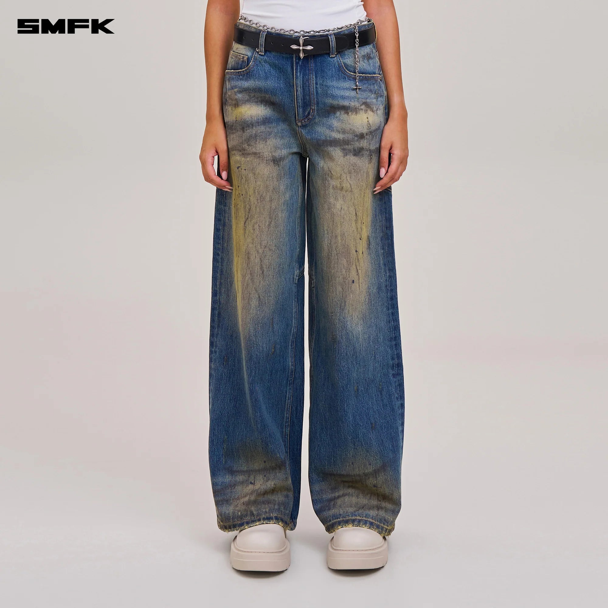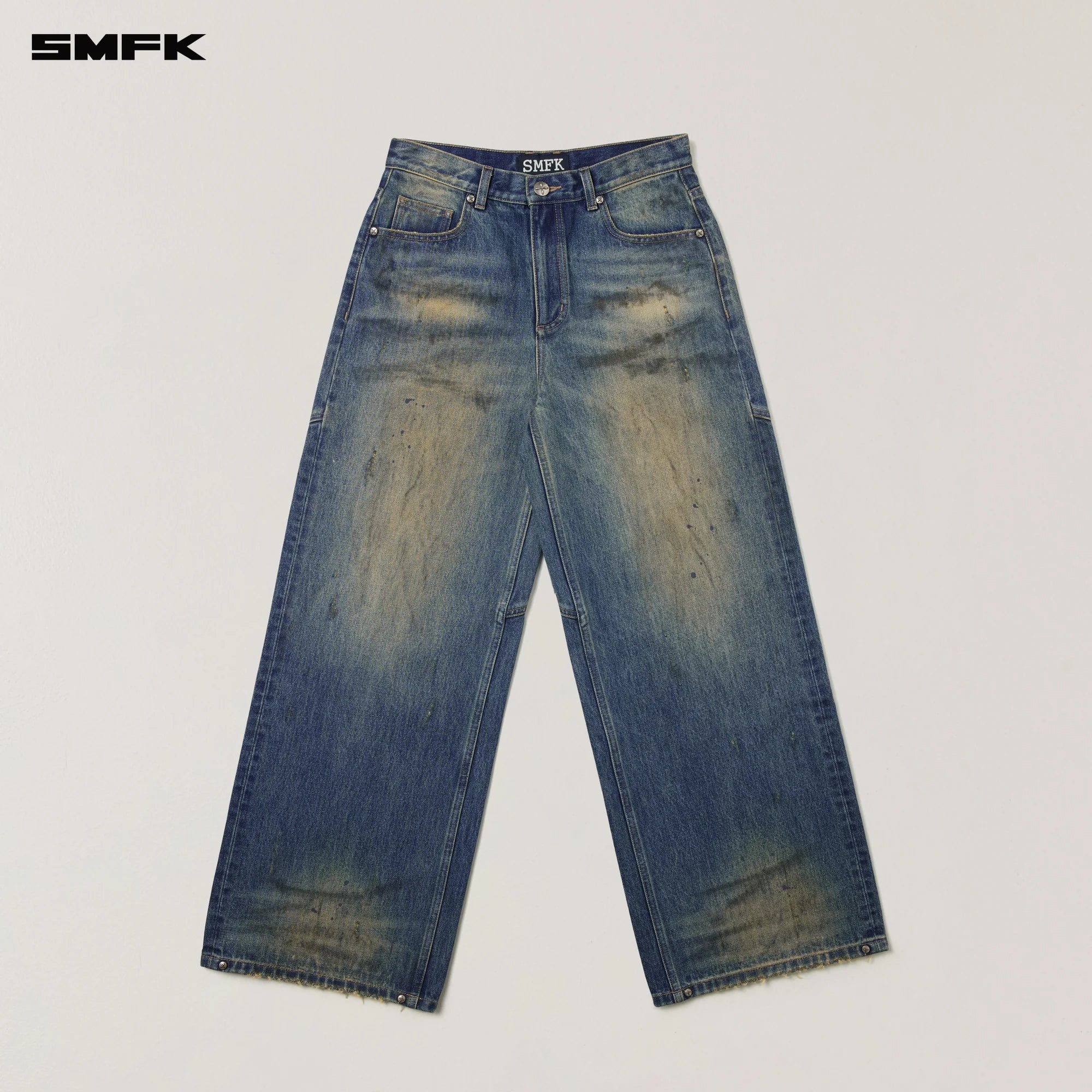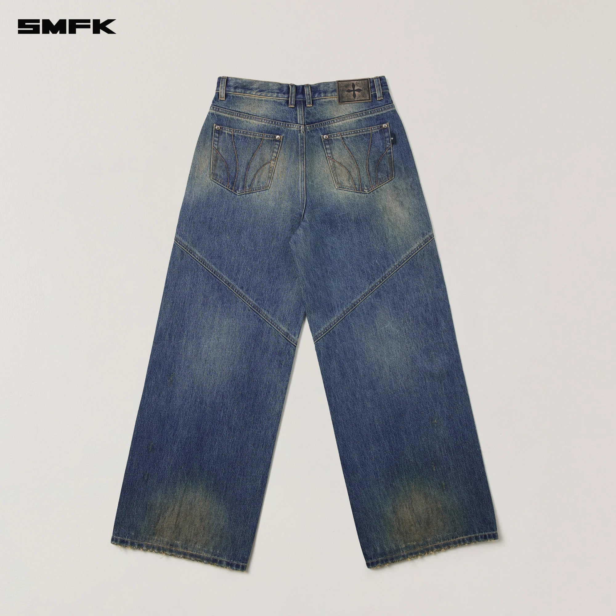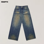 SMFK 2512 十字雕像荒原宽直筒牛仔裤