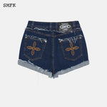 SMFK SS2303 复古学院牛仔短裤 深海蓝