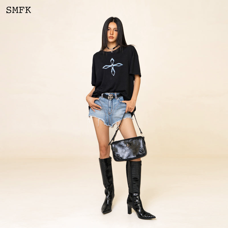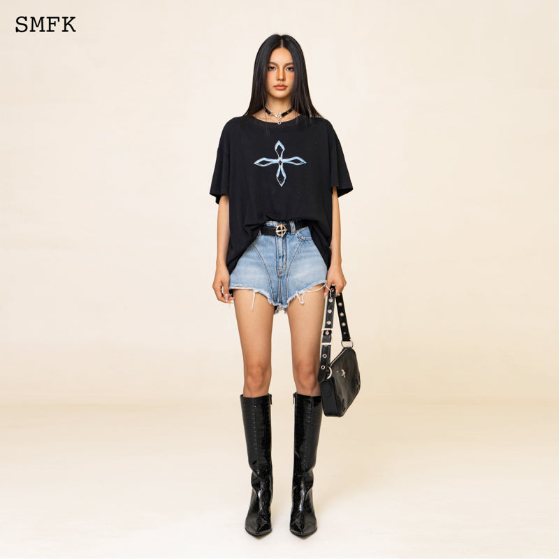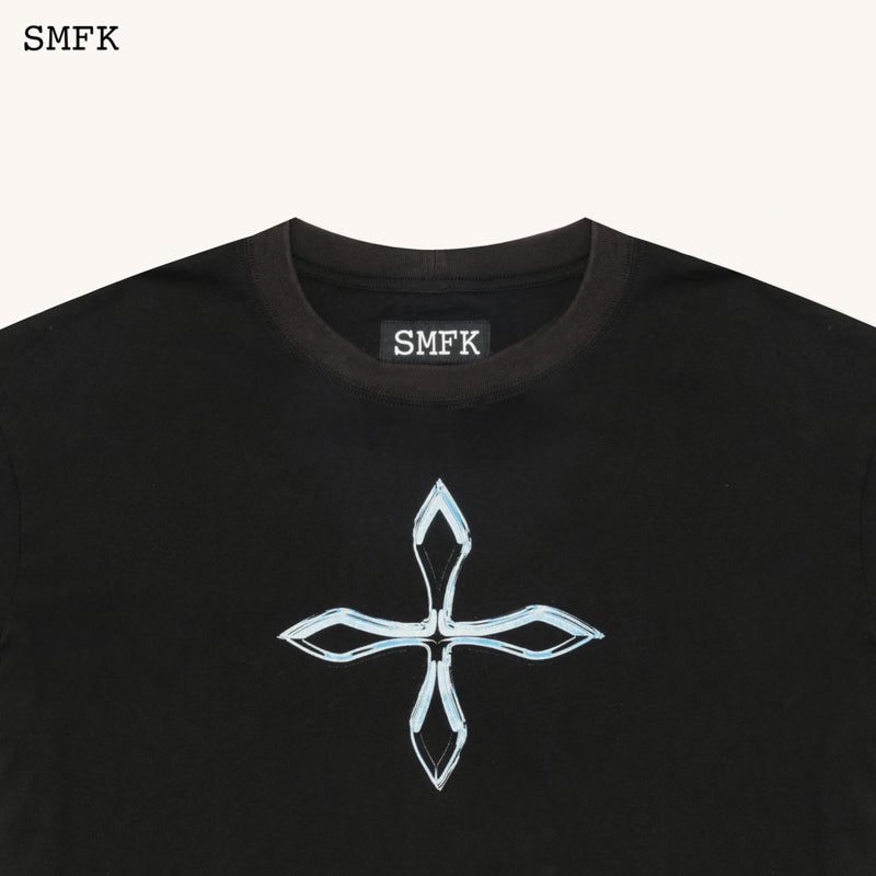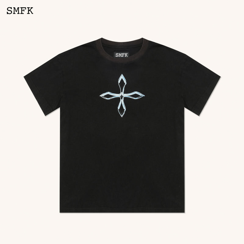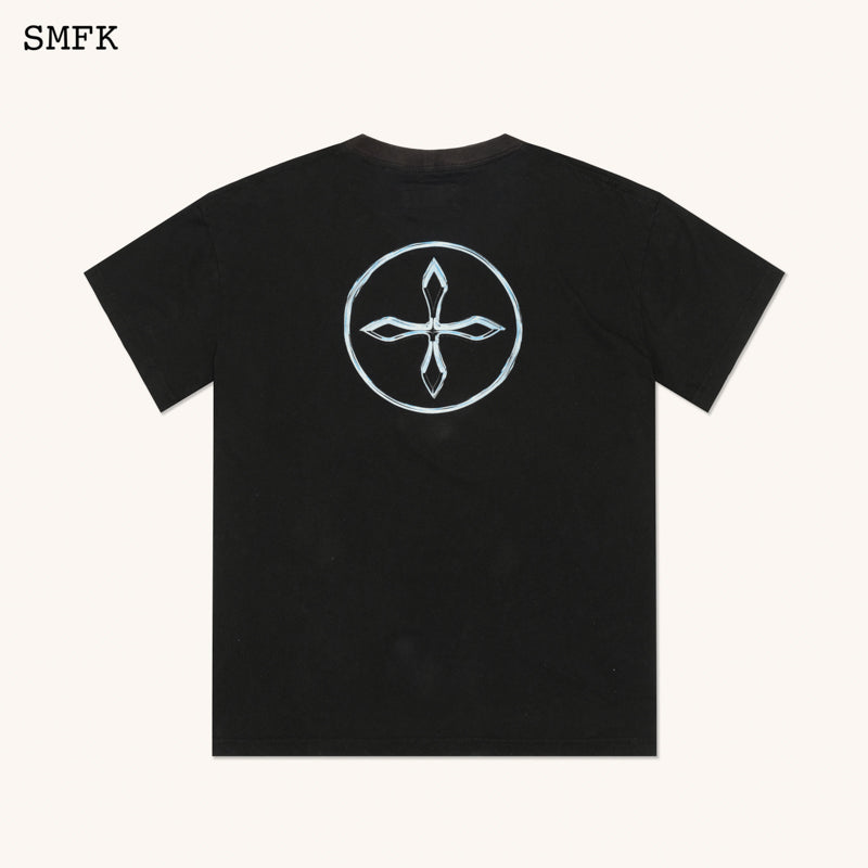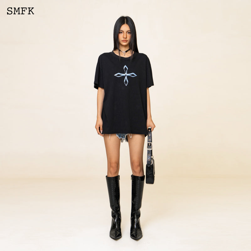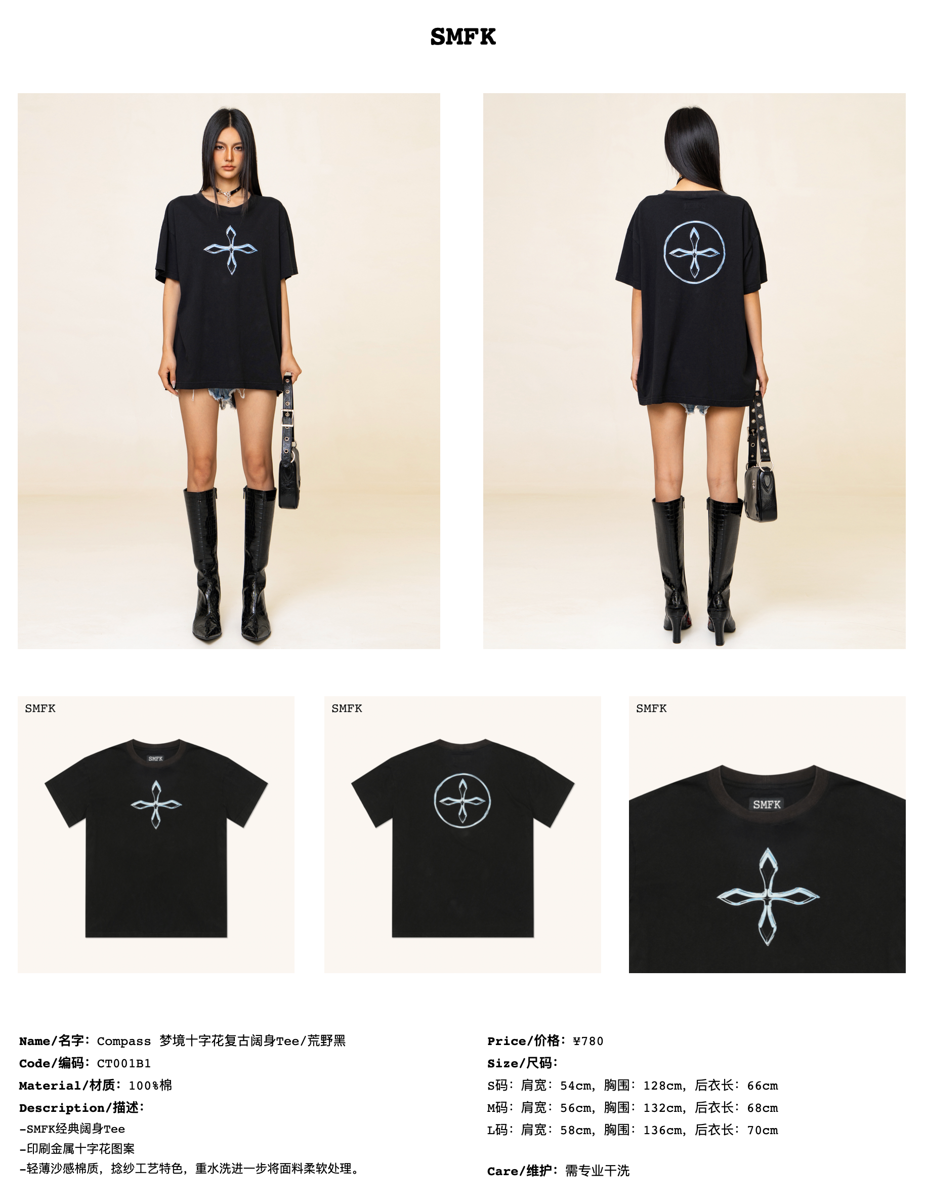 SMFK SS2308 梦境十字花复古阔身Tee 黑