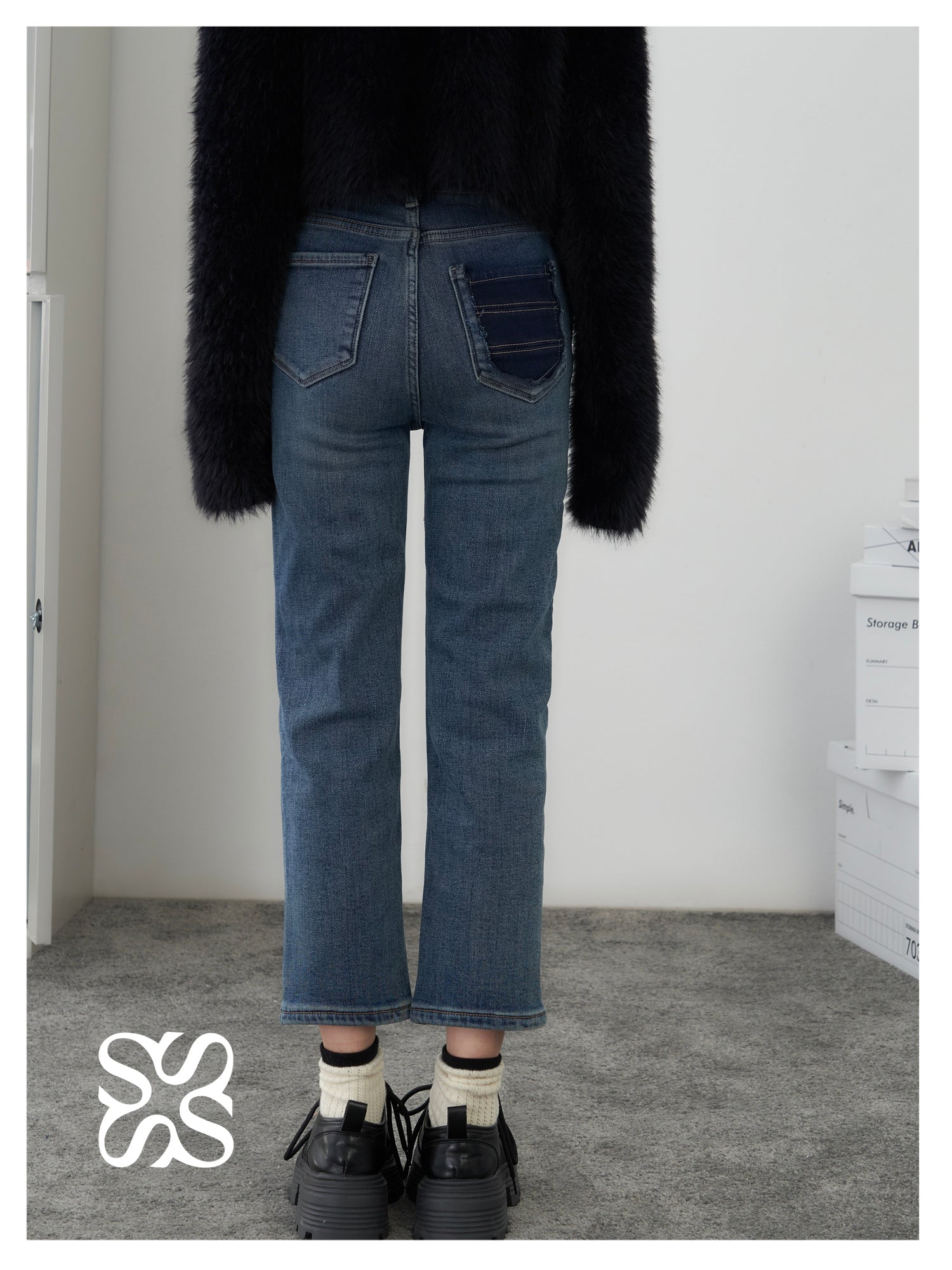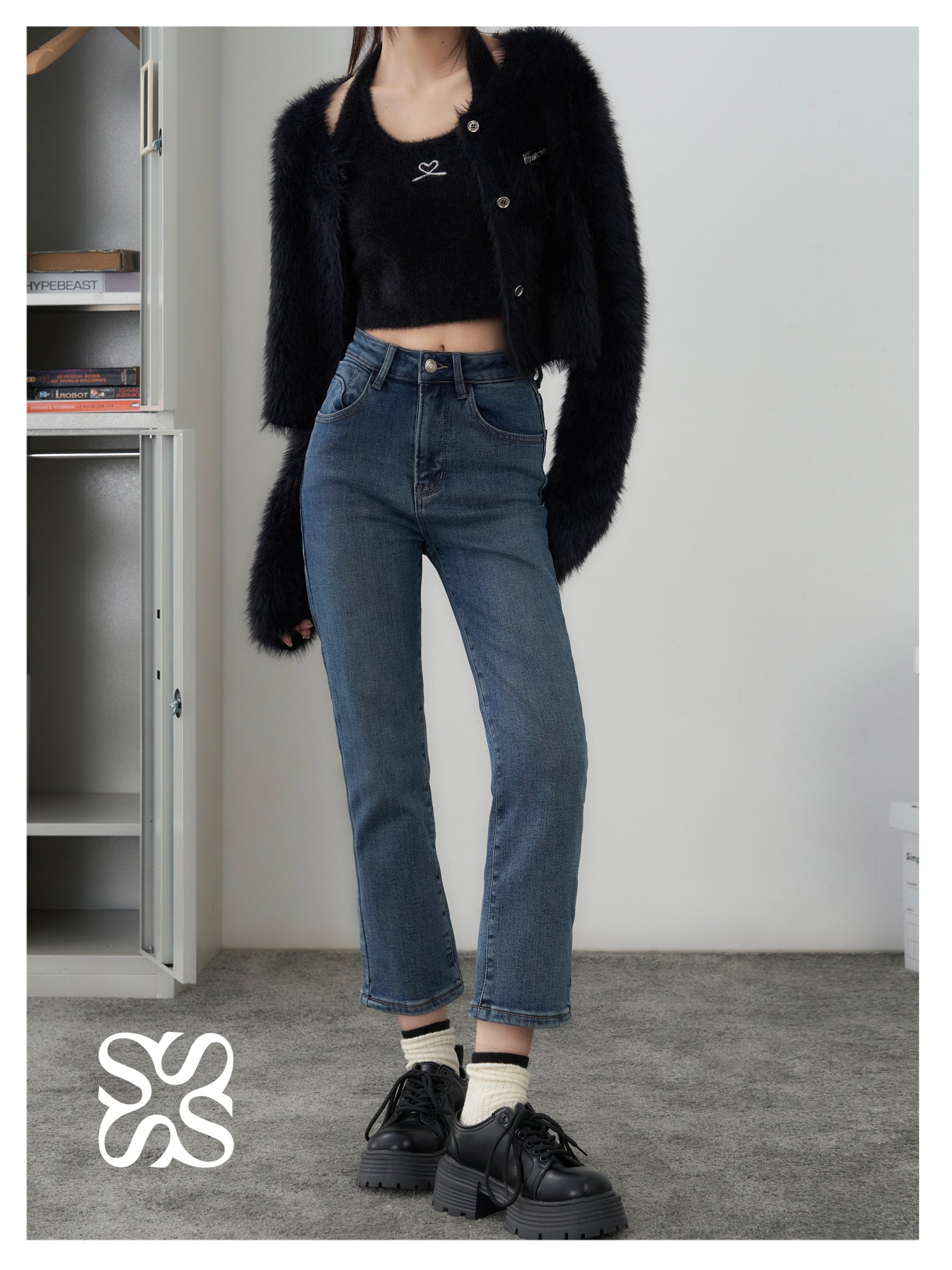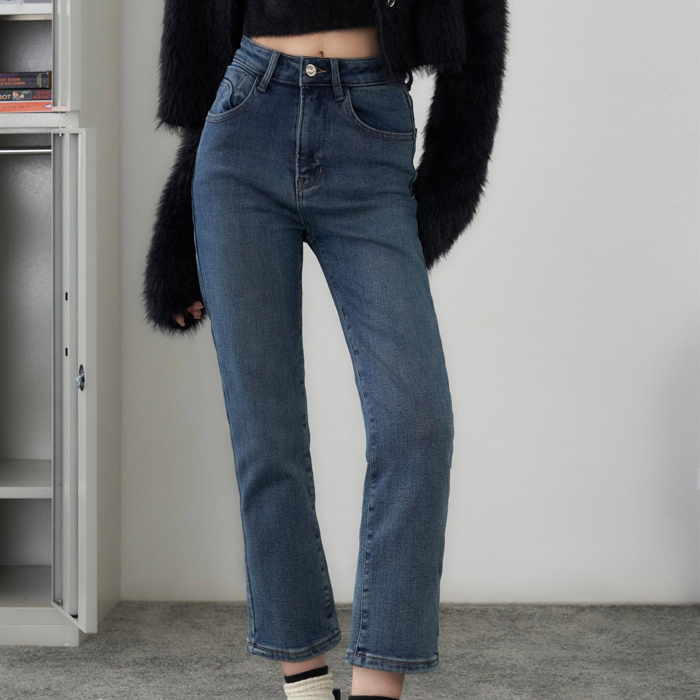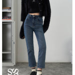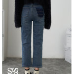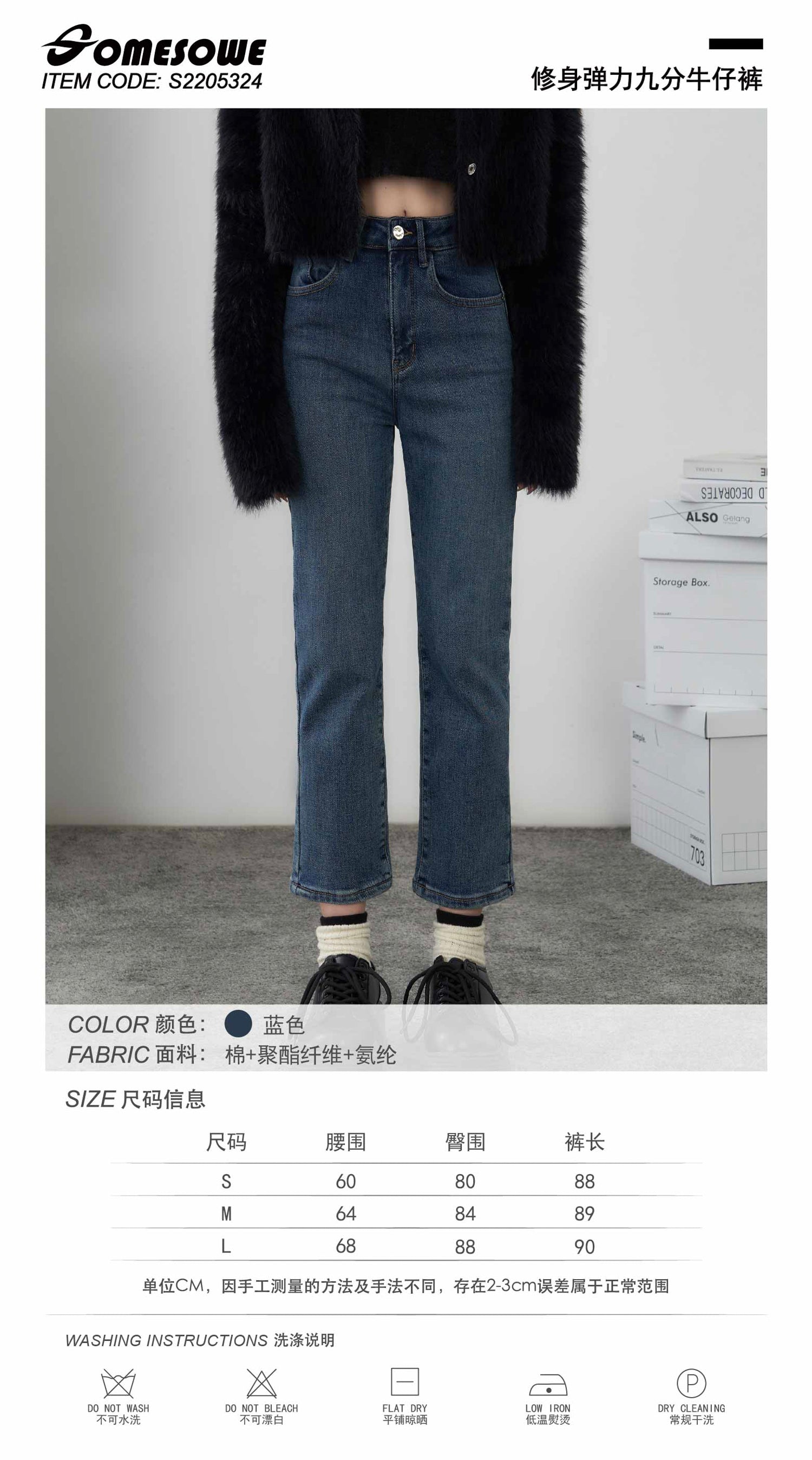 SOMESOWE 修身弹力加绒保暖显瘦通勤九分直筒牛仔裤