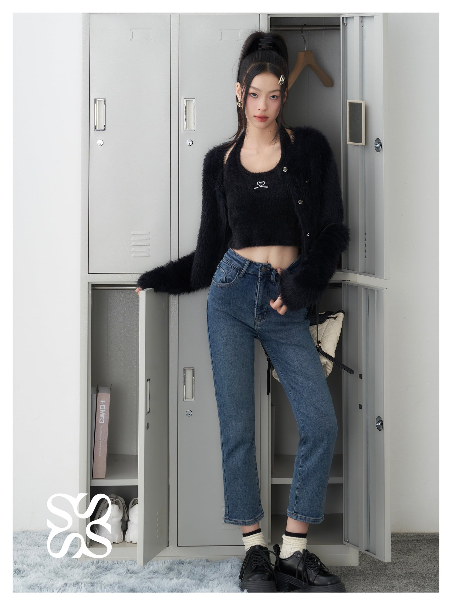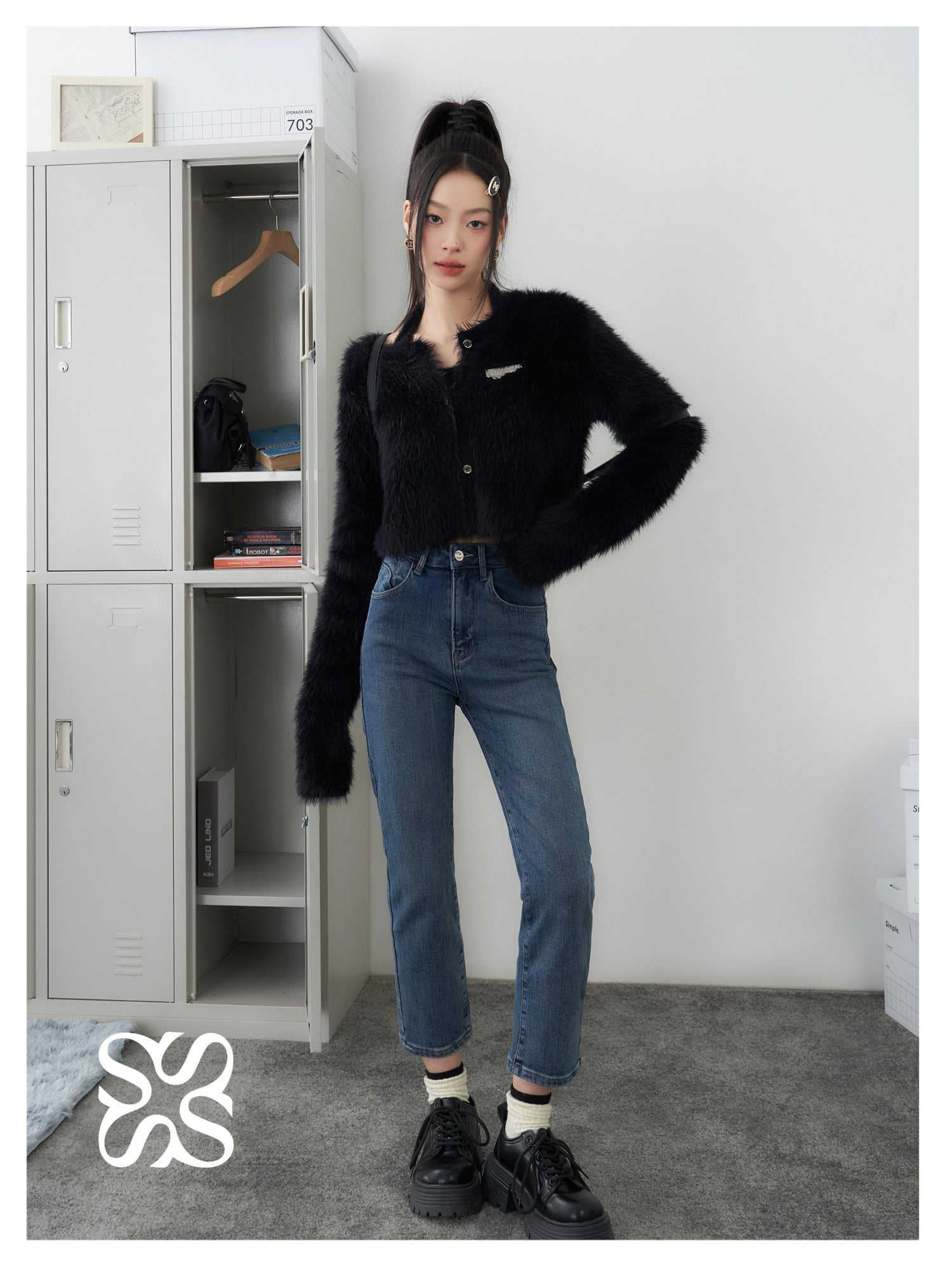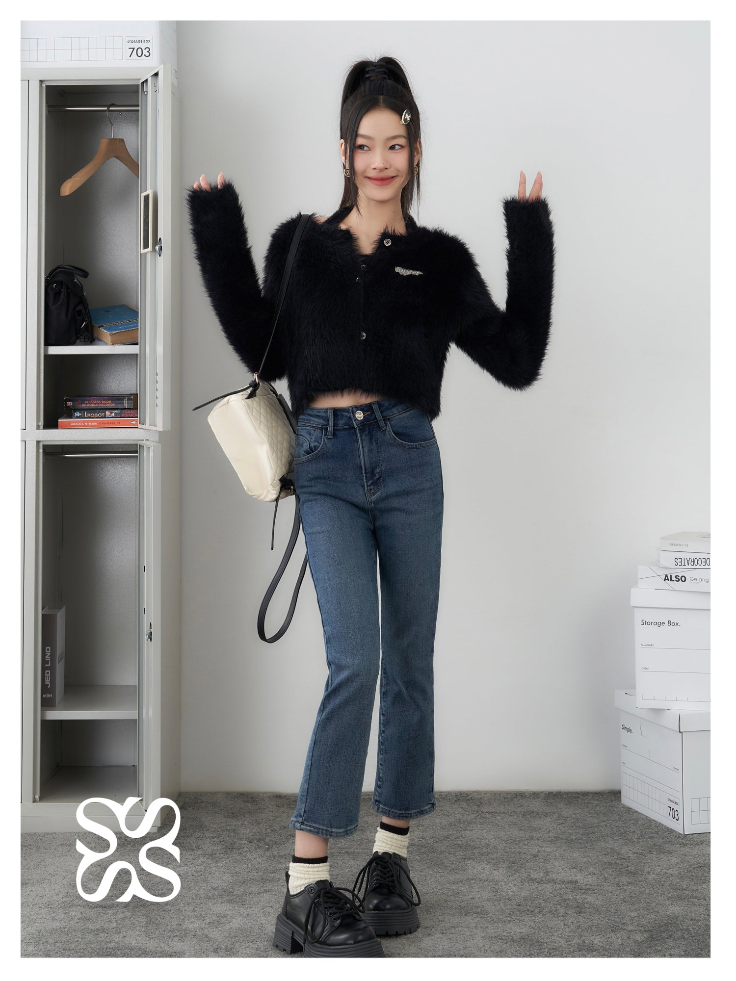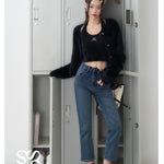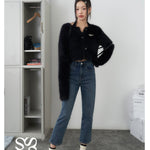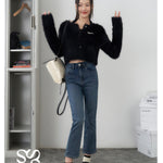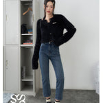SOMESOWE 修身弹力加绒保暖显瘦通勤九分直筒牛仔裤