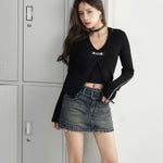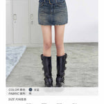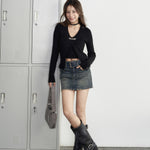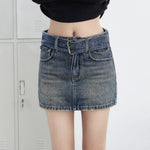 SOMESOWE 复古宽腰带水洗牛仔短裙