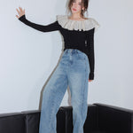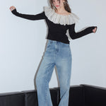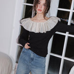 SOMESOWE 复古芭蕾欧根纱弹力修身长袖