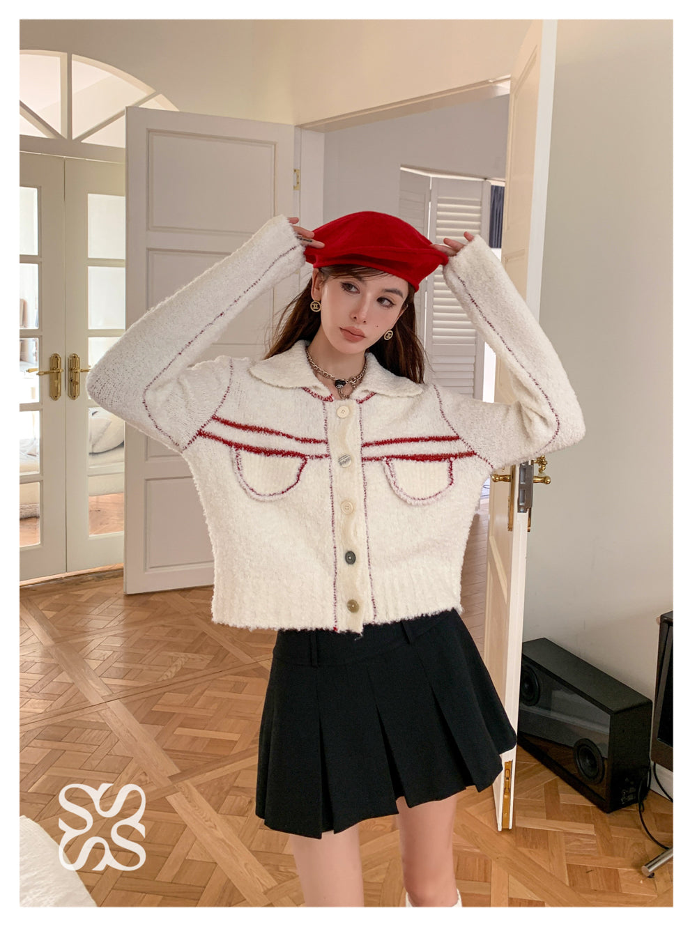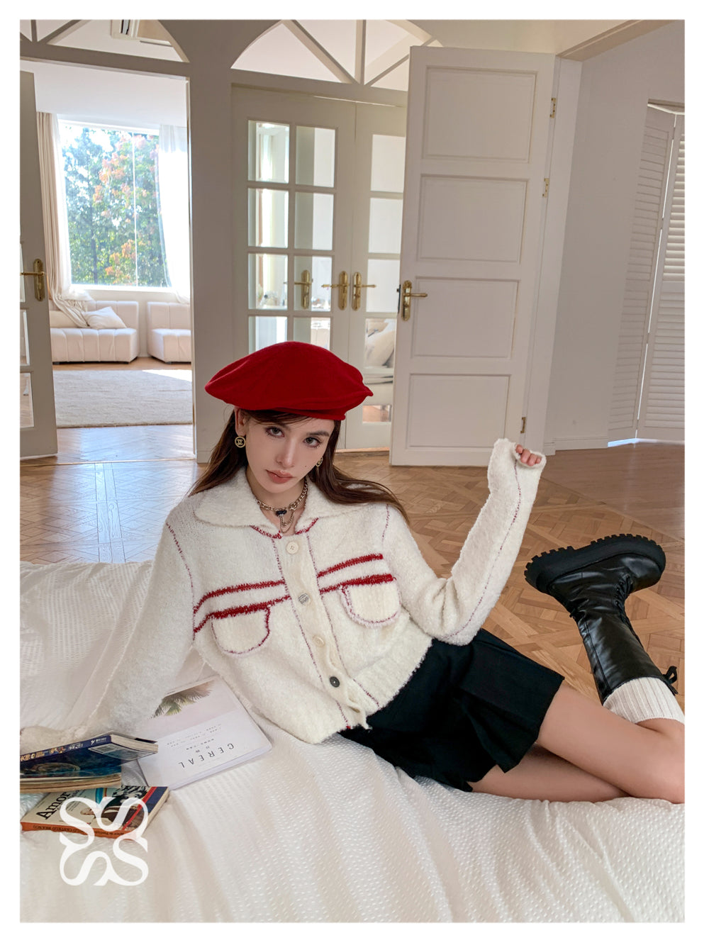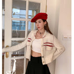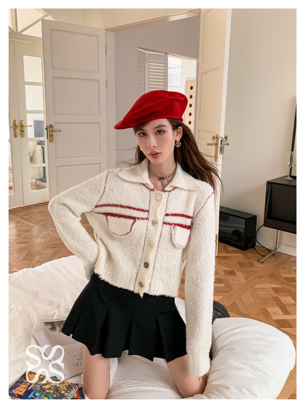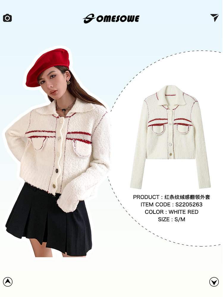 SOMESOWE 红条纹绒感翻领外套