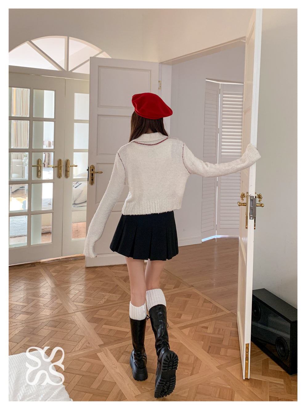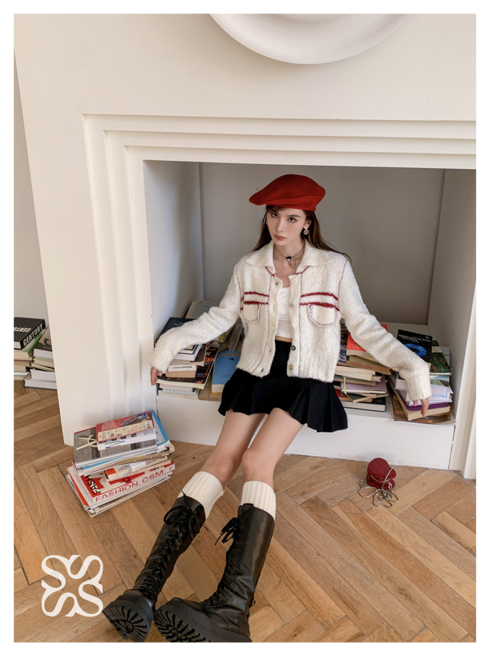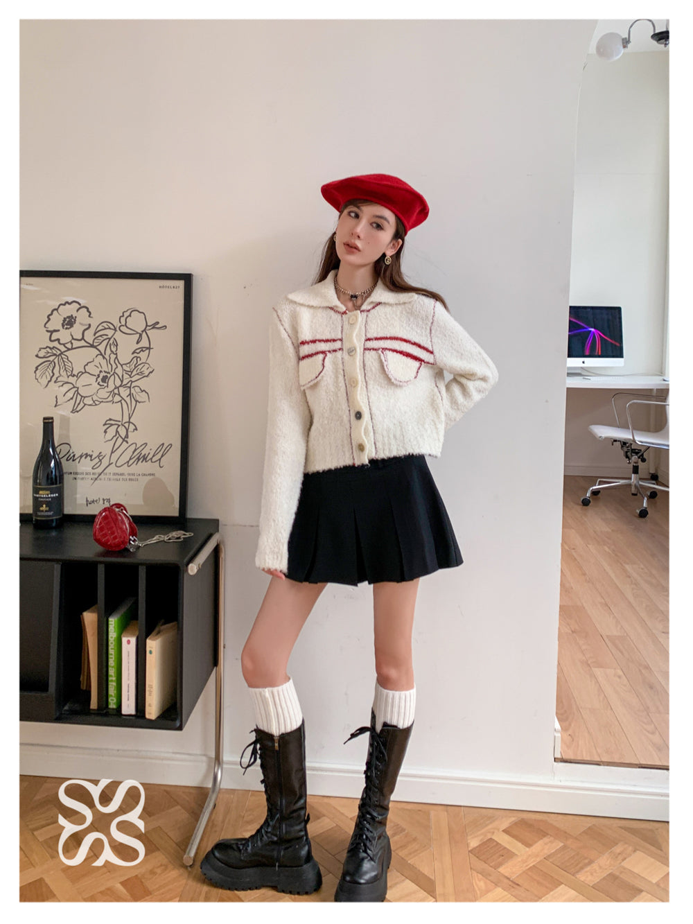 SOMESOWE 红条纹绒感翻领外套