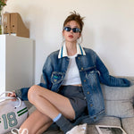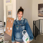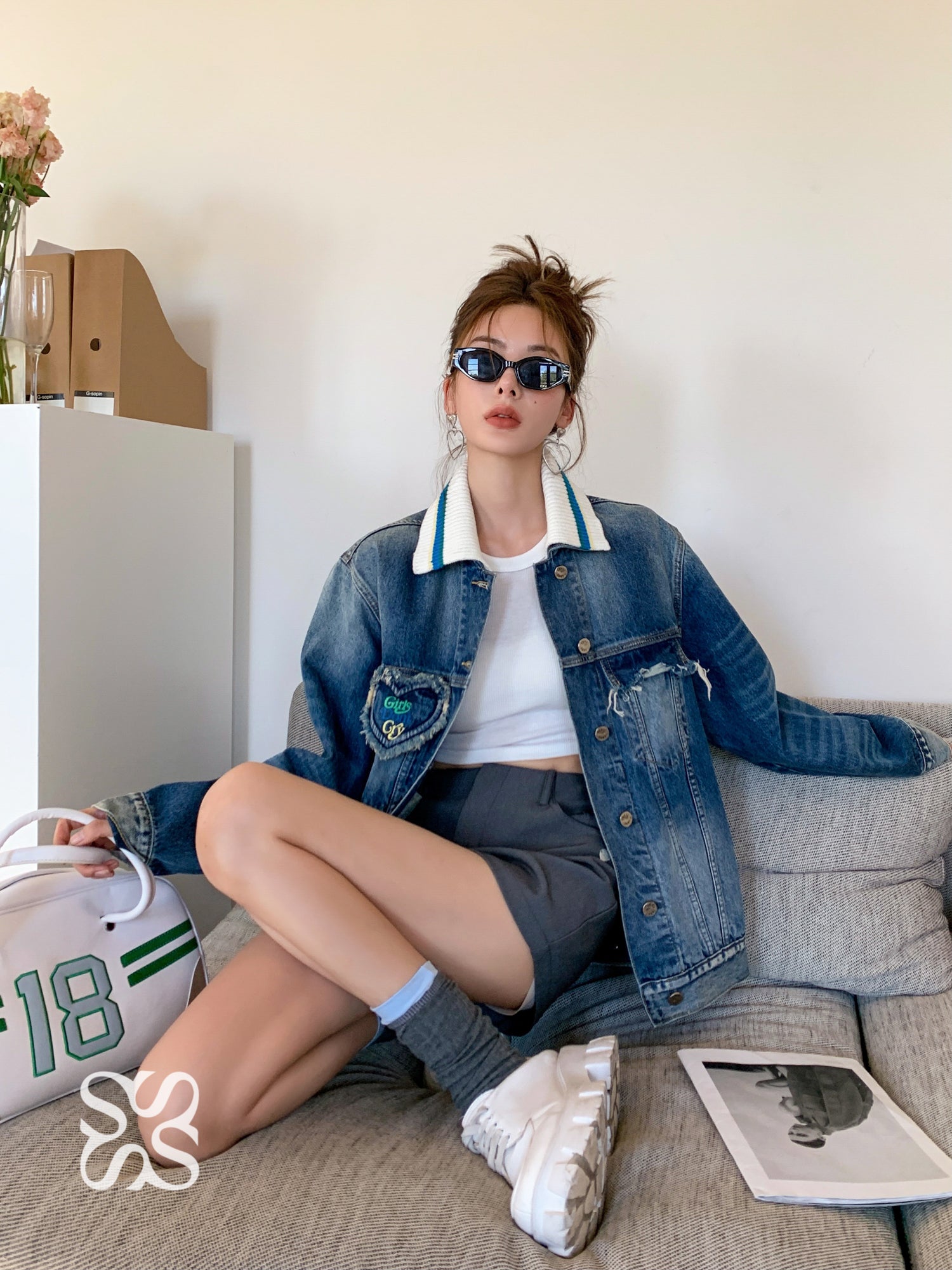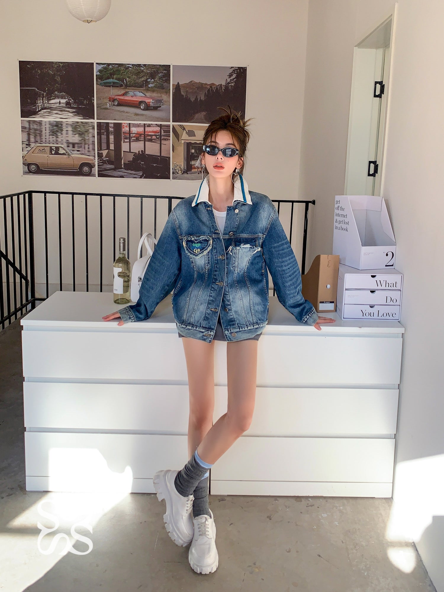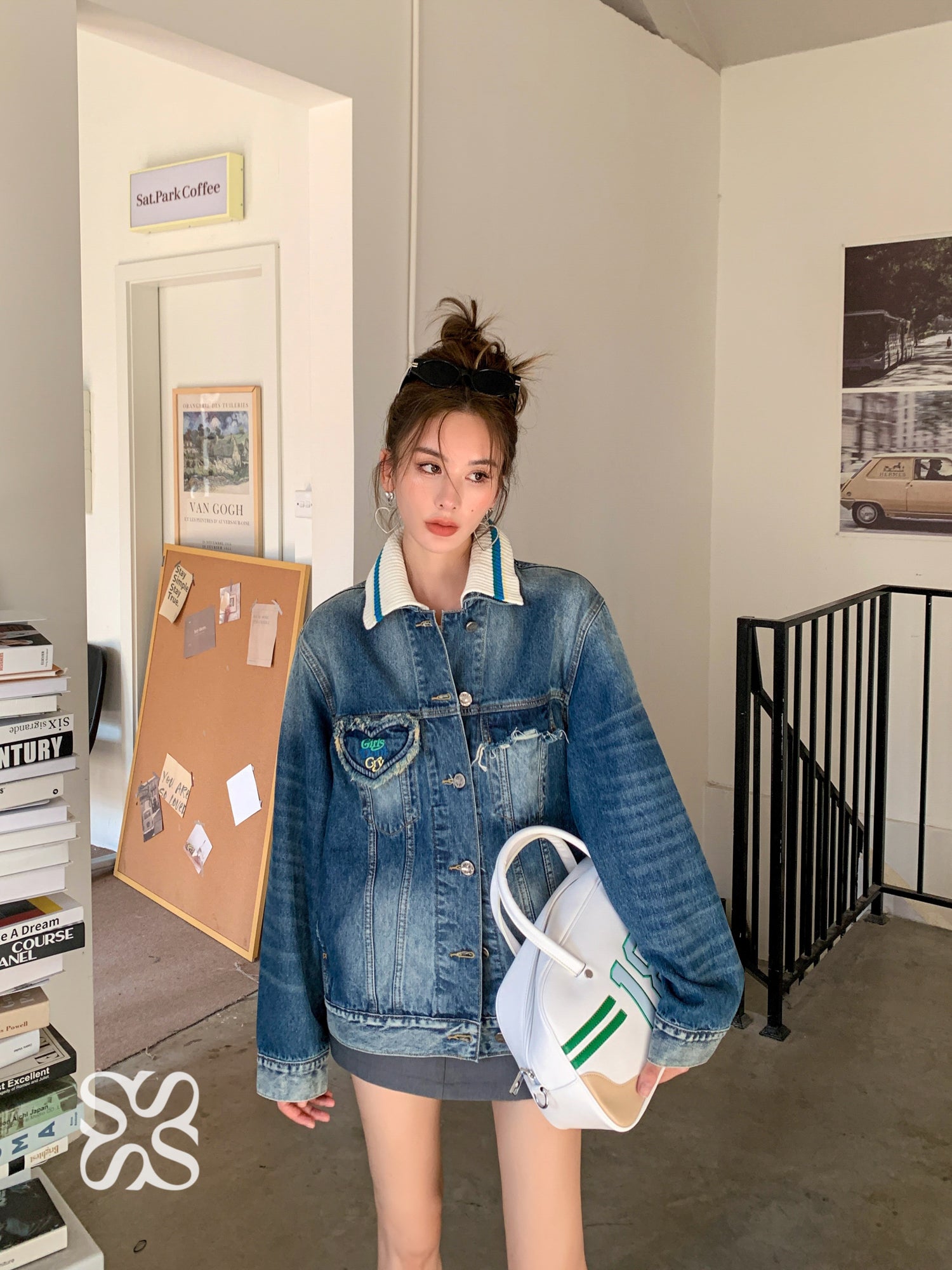 SOMESOWE 街头少女 针织领爱心牛仔外套