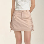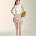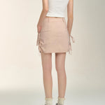 SOMESOWE 2407 甜辣蝴蝶结抽绳工装短裙 皮粉