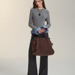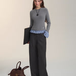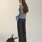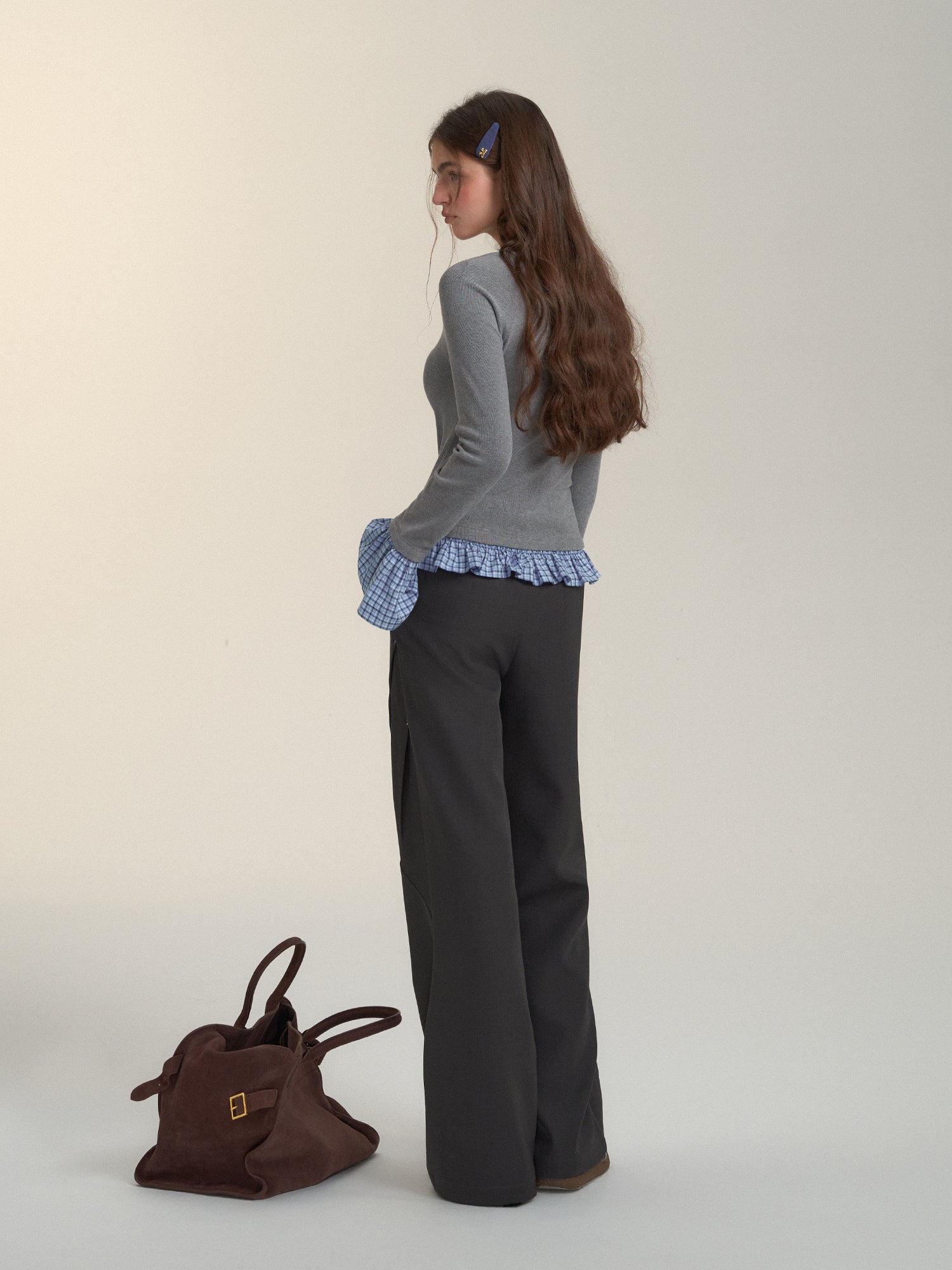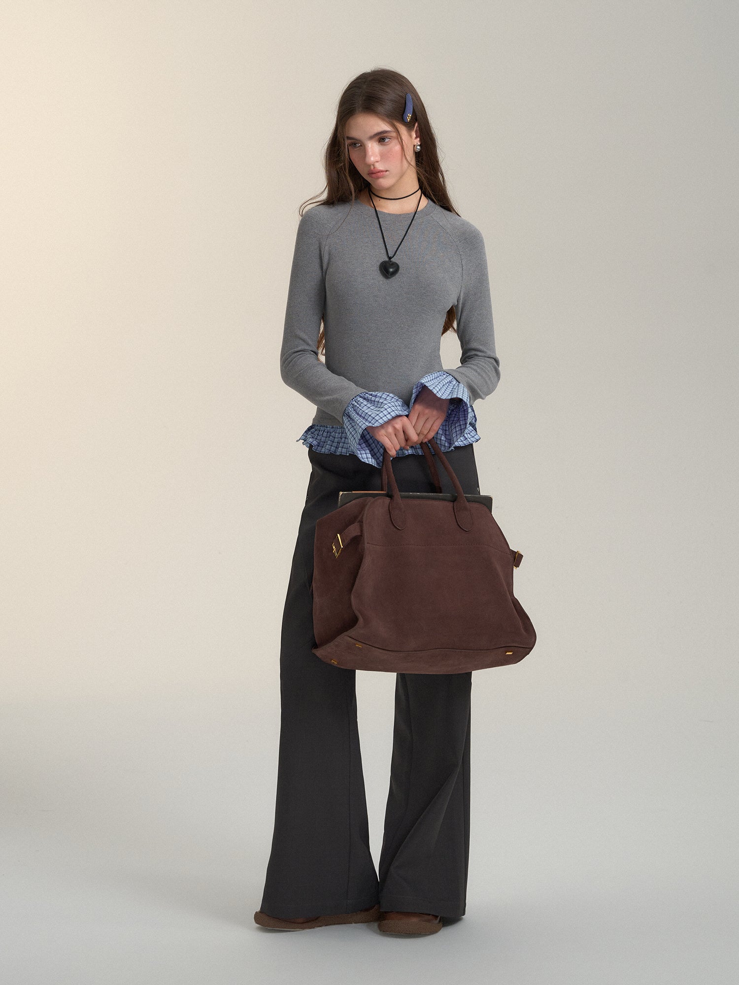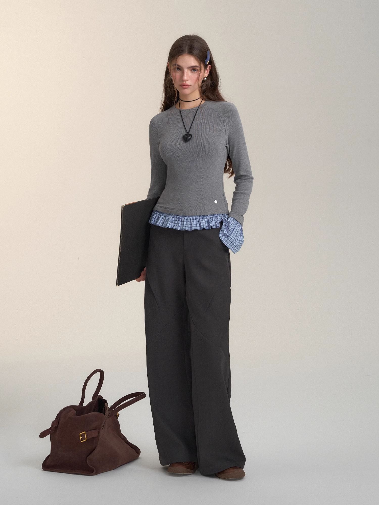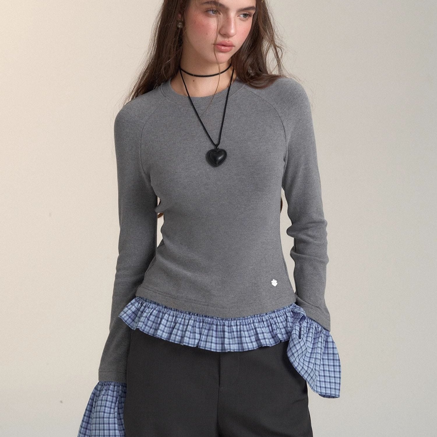 SOMESOWE 2411 复古格纹拼接长袖上衣 灰
