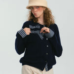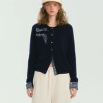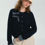 SOMESOWE 2412 格纹蝴蝶结毛衣开衫 藏青