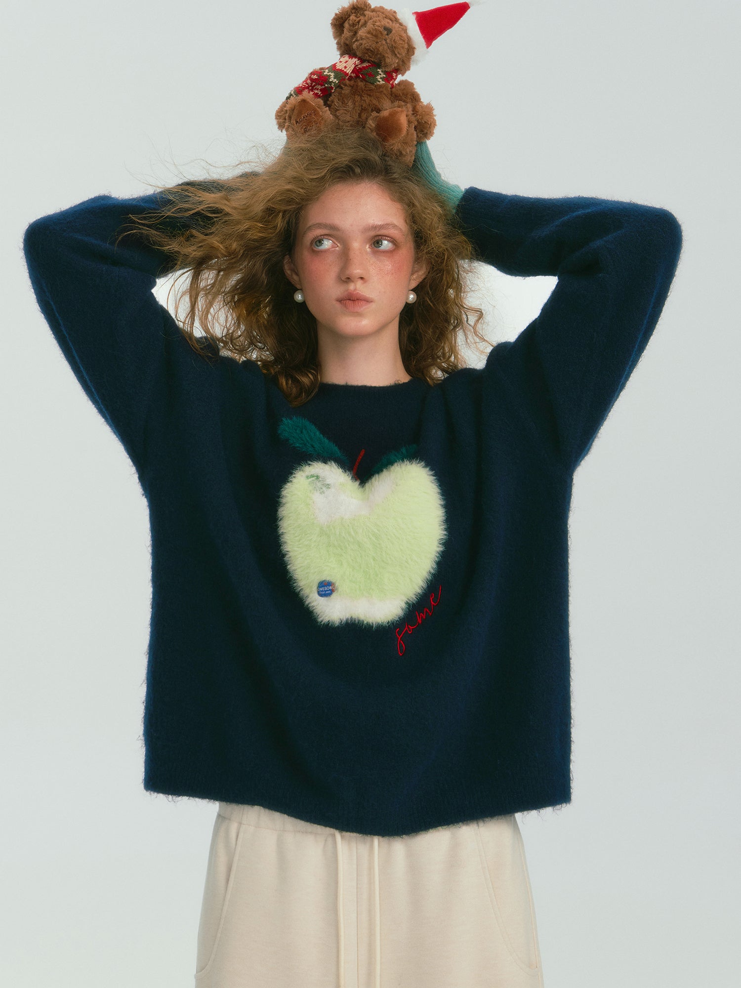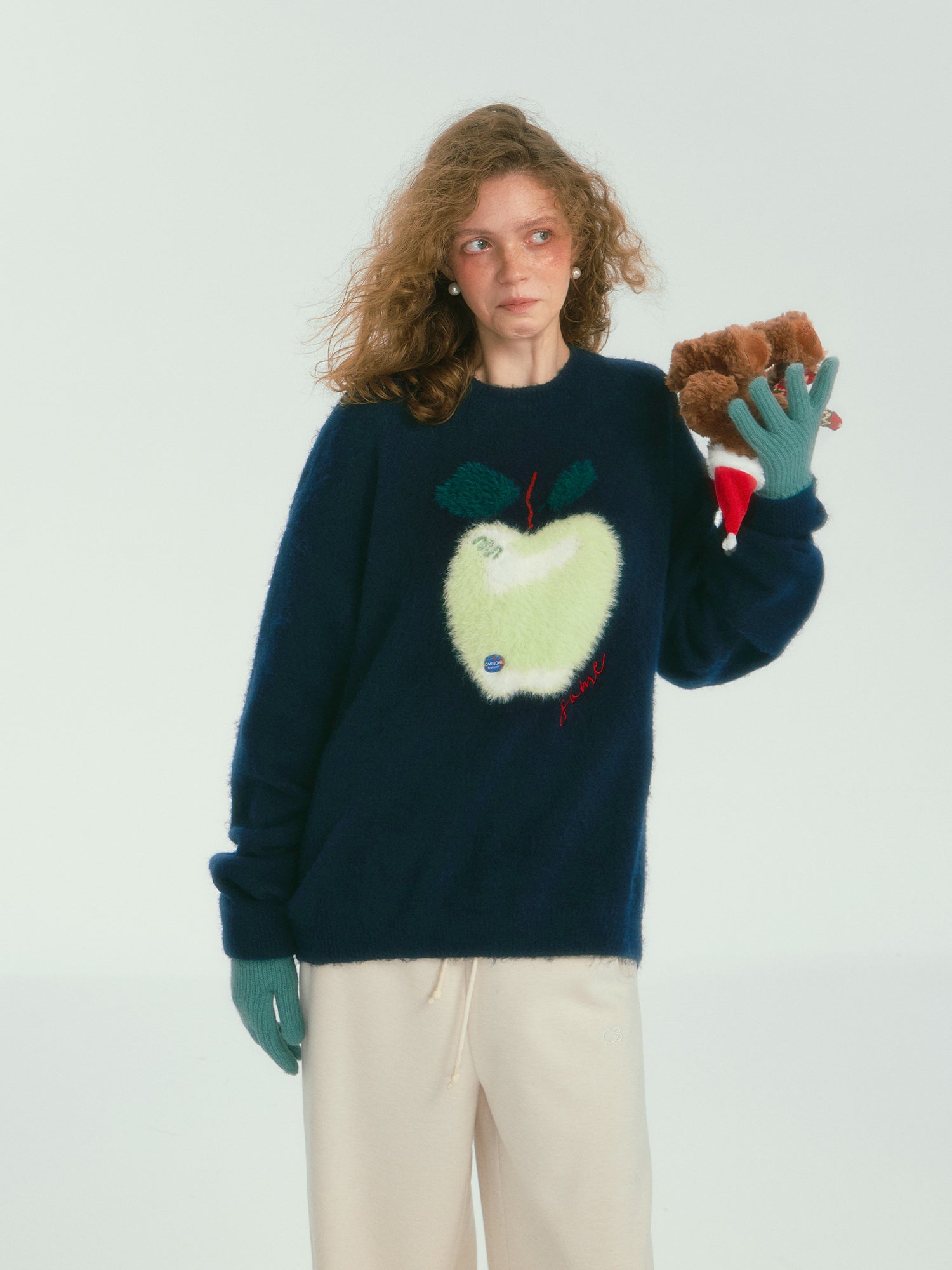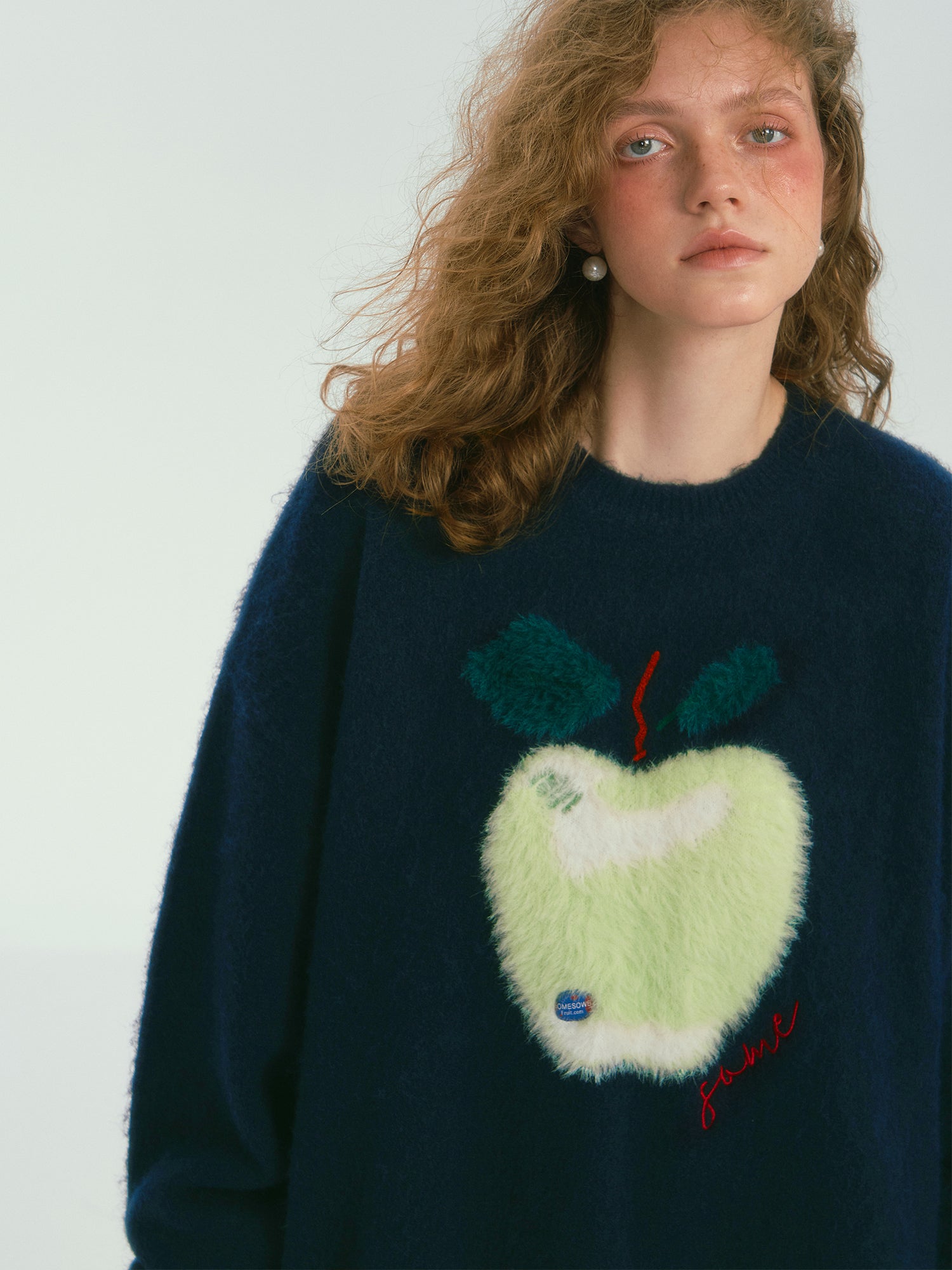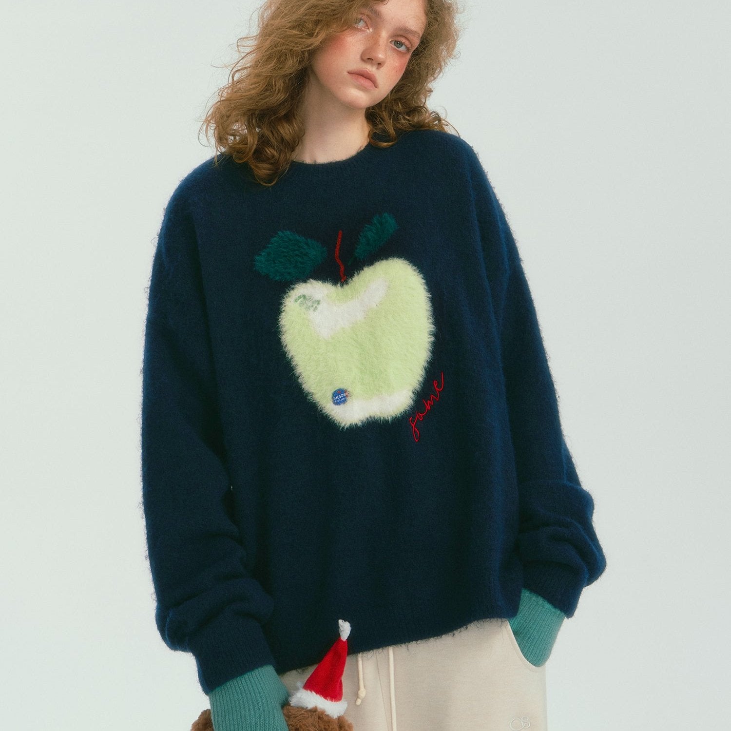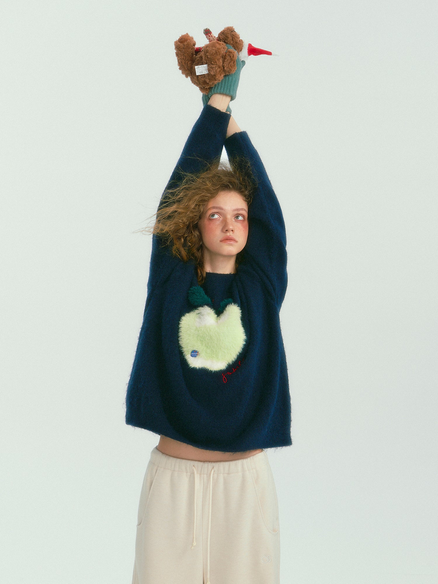 SOMESOWE 2412 趣味苹果云感毛衣 藏青