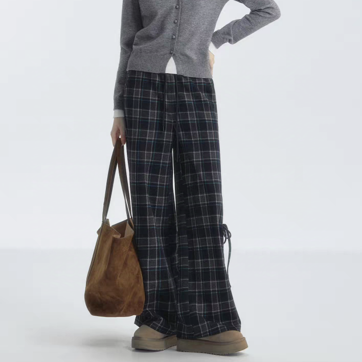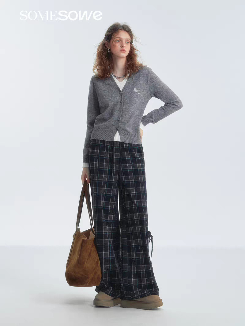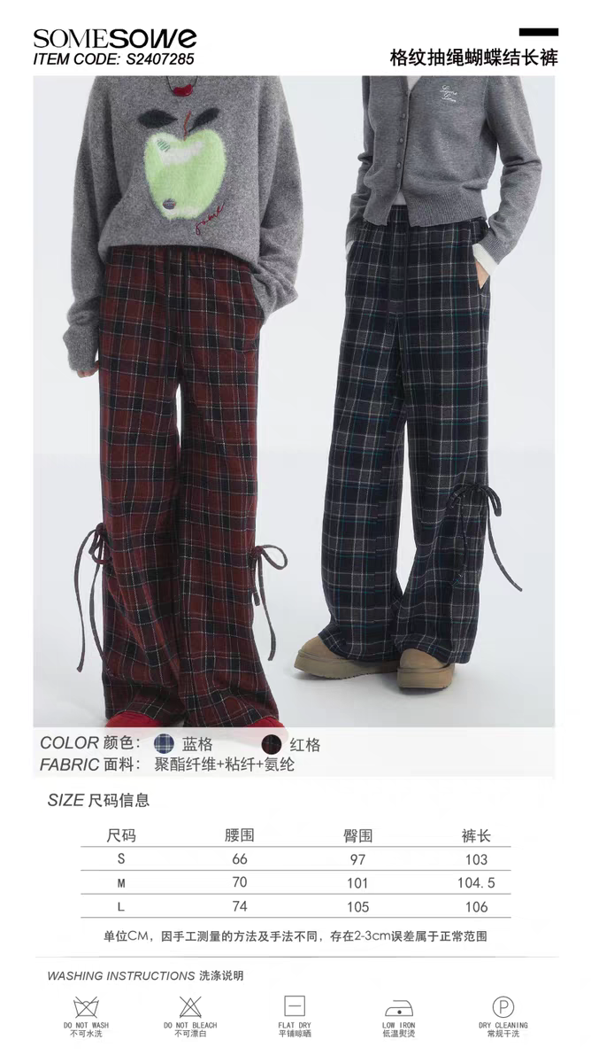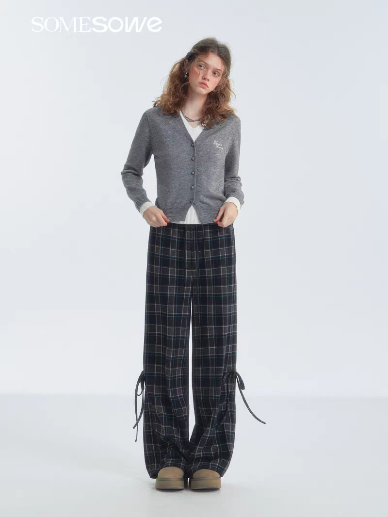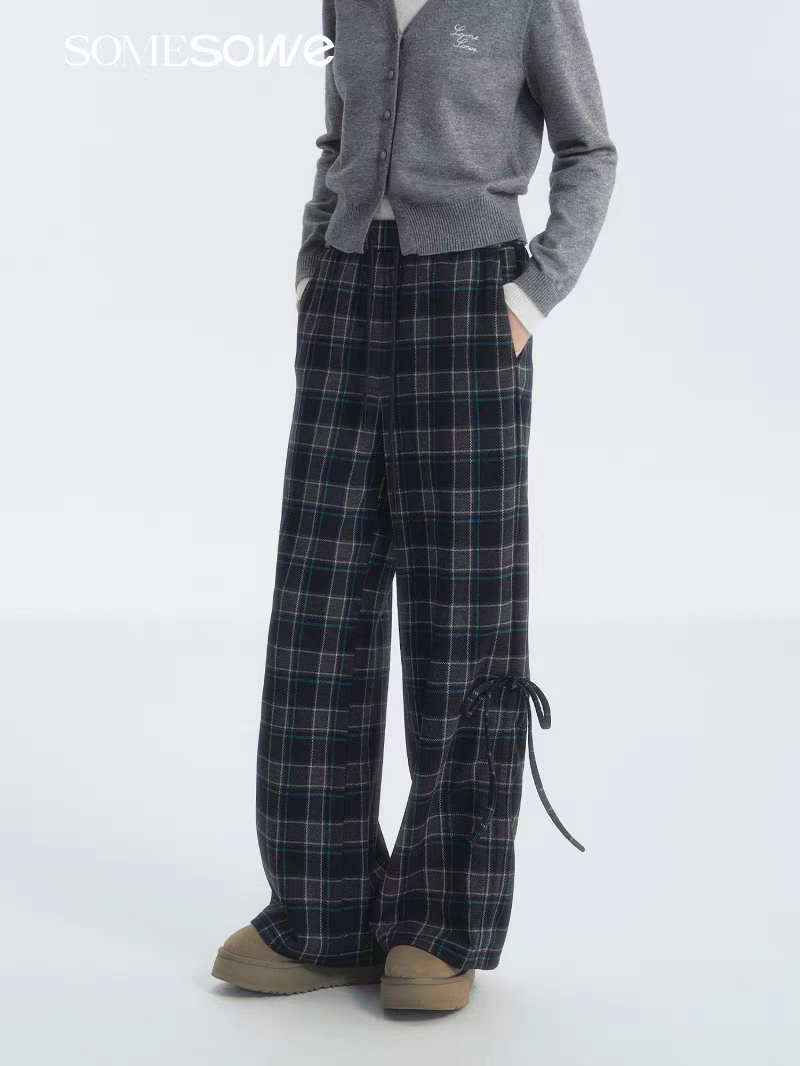 SOMESOWE 2501 格纹抽绳蝴蝶结长裤