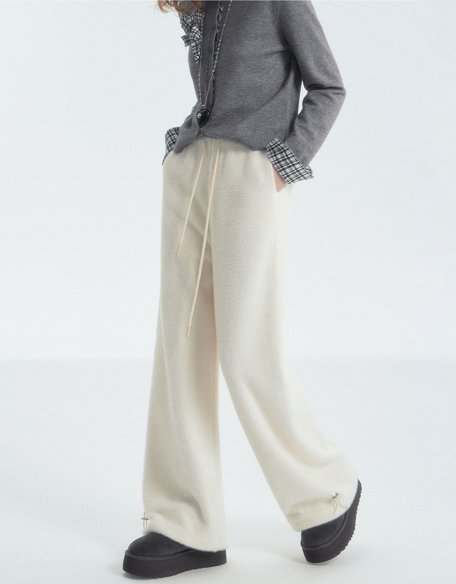 SOMESOWE 2501 蕾丝垂感绒绒裤