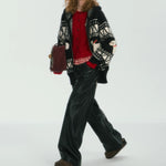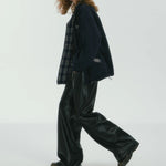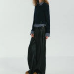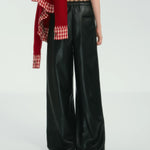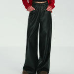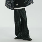SOMESOWE 2501 蕾丝拼接休闲抽绳皮裤