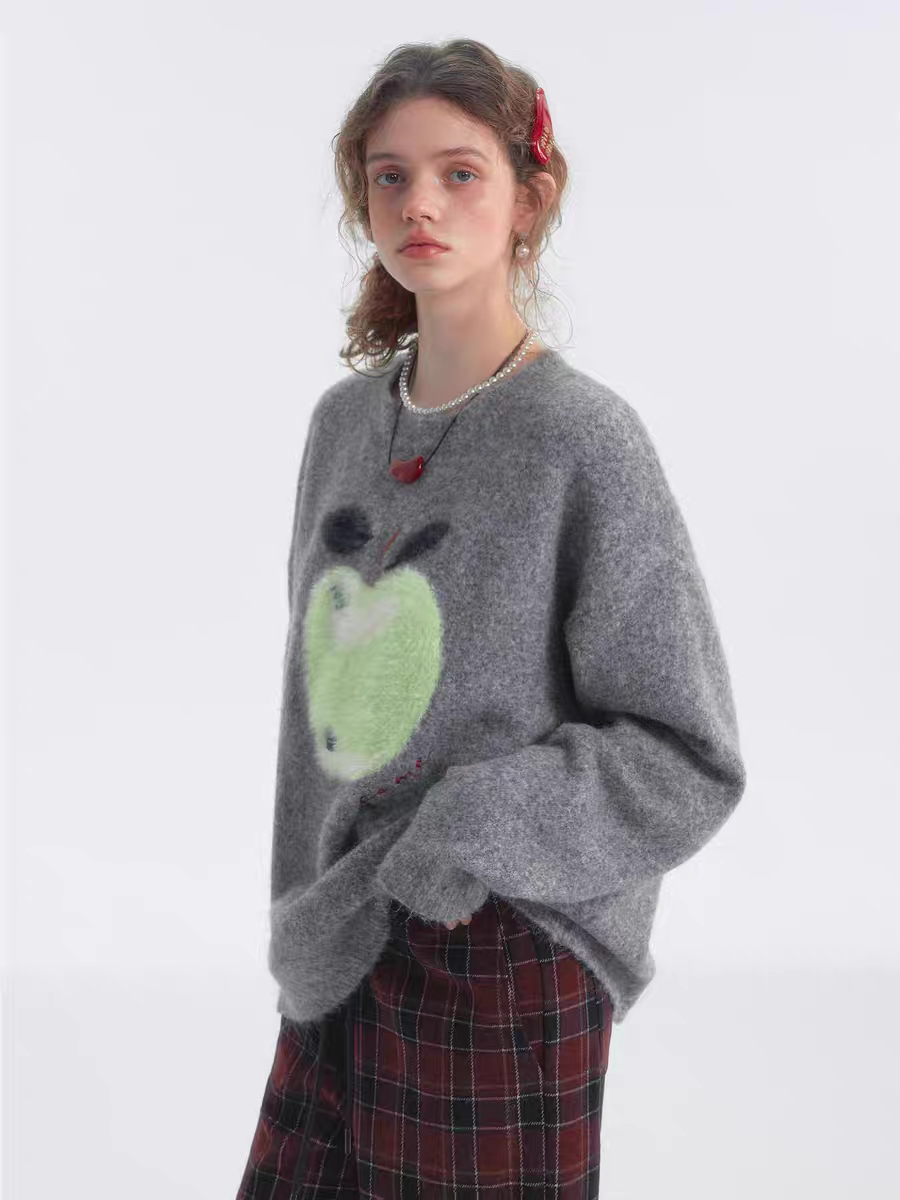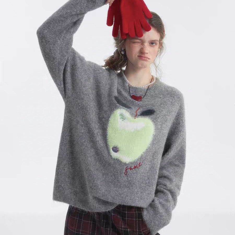 SOMESOWE 2501 趣味苹果云感毛衣 灰