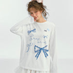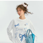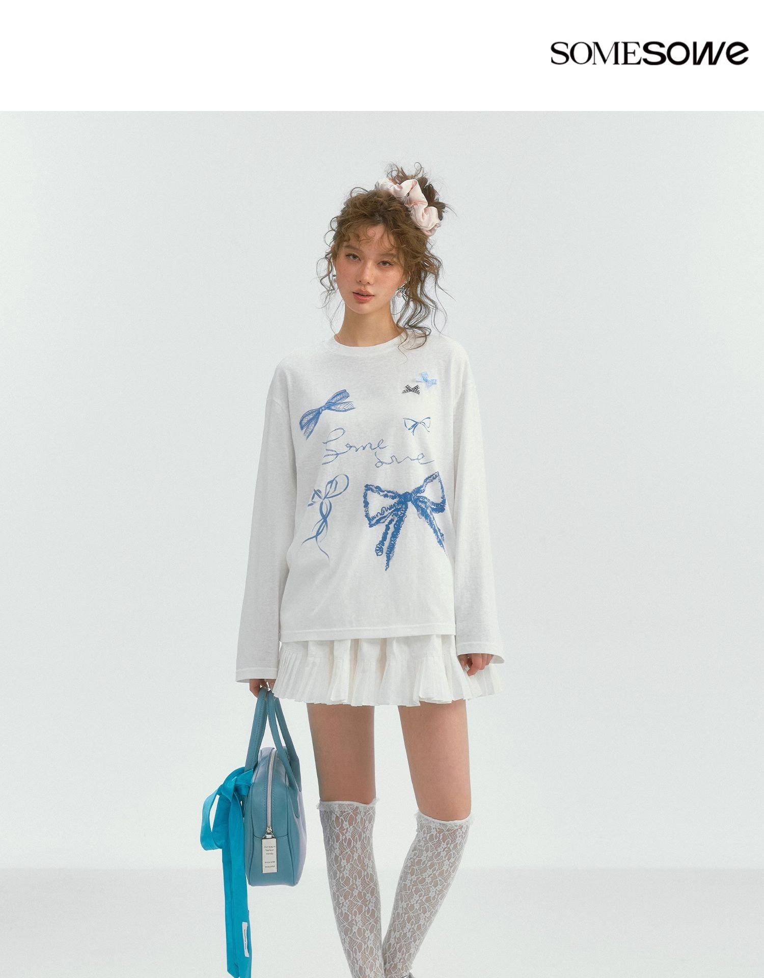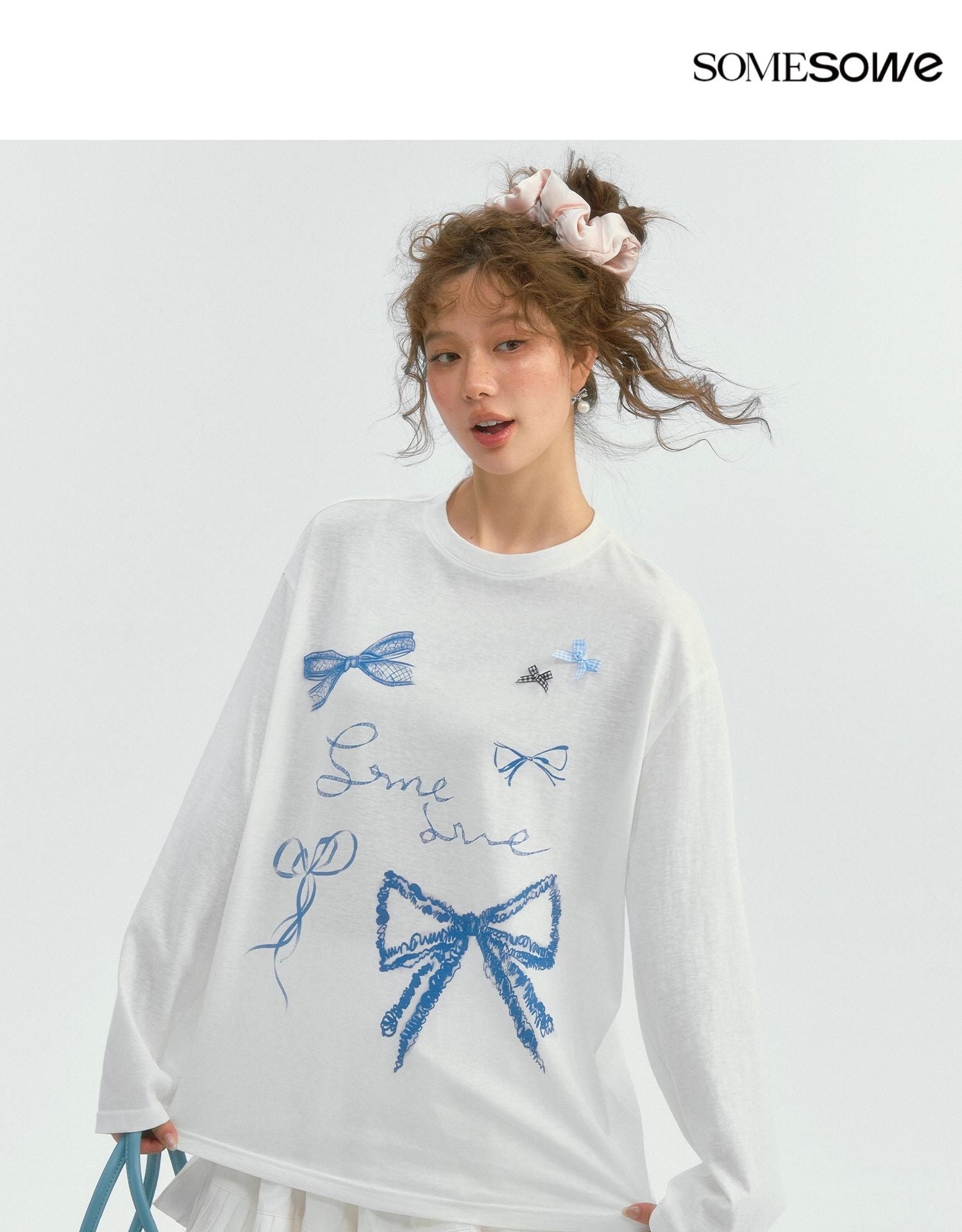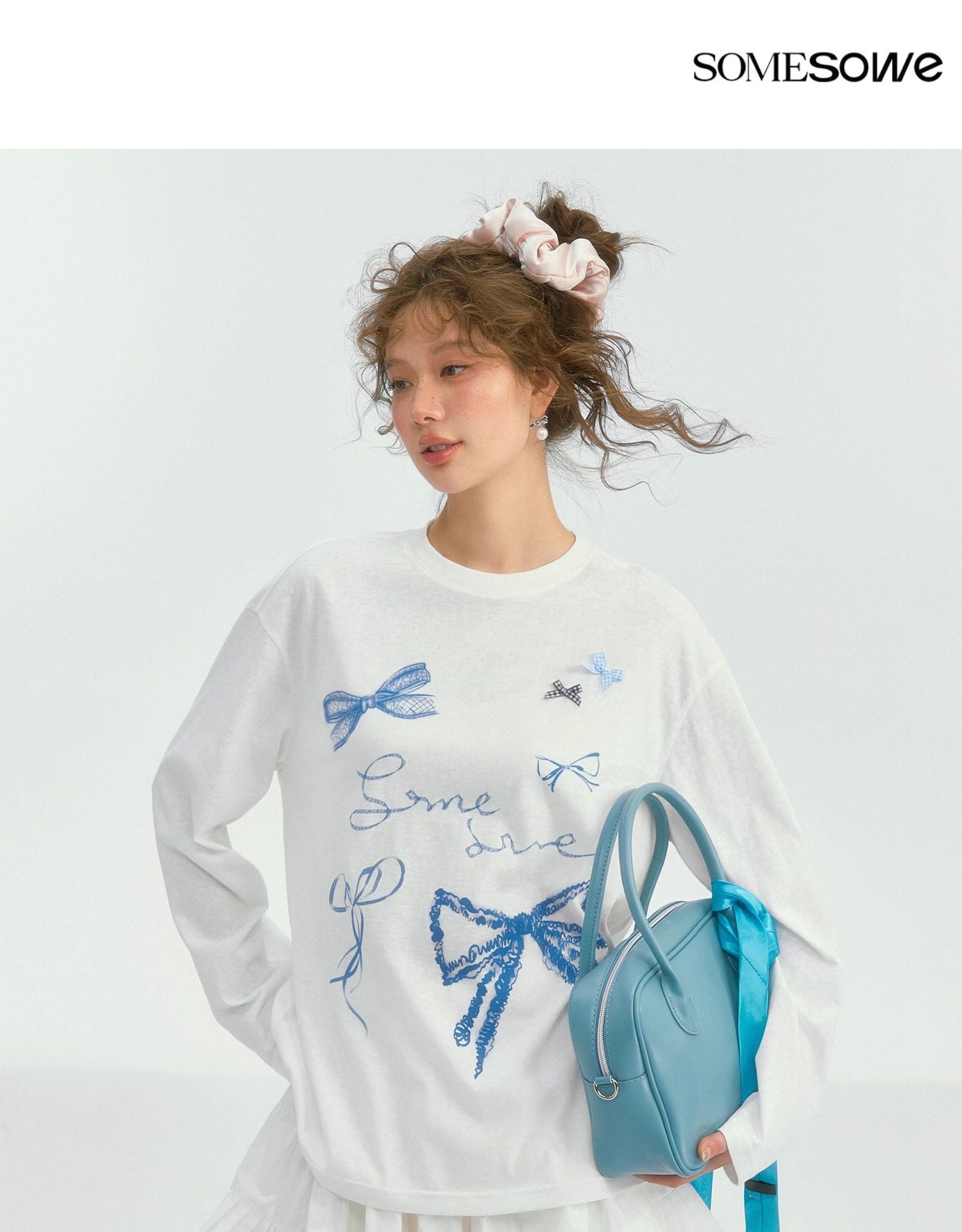 SOMESOWE 2503 手绘蝴蝶结长袖T恤 白
