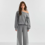 SOMESOWE 2503 蕾丝蝴蝶结休闲长裤 灰