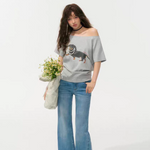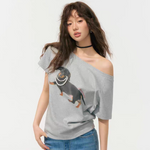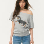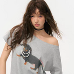 SOMESOWE 2505 珍珠腊肠狗斜肩T恤 灰