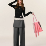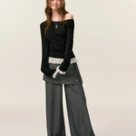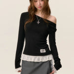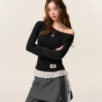SOMESOWE 2505 蕾丝拼接木耳边针织上衣