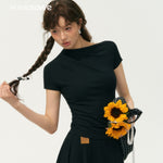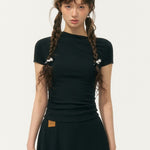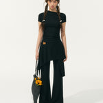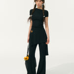 SOMESOWE 2507 云感斜肩堆褶T恤 黑