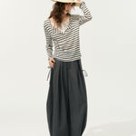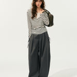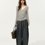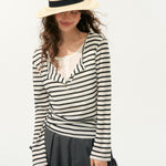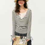 SOMESOWE 2510 假两件V荡领条纹长袖T恤