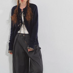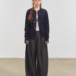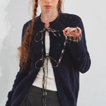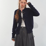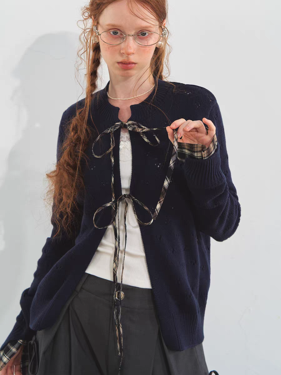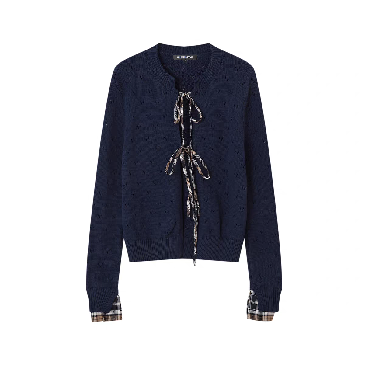 SOMESOWE 2510 复古格纹系带开衫 藏蓝
