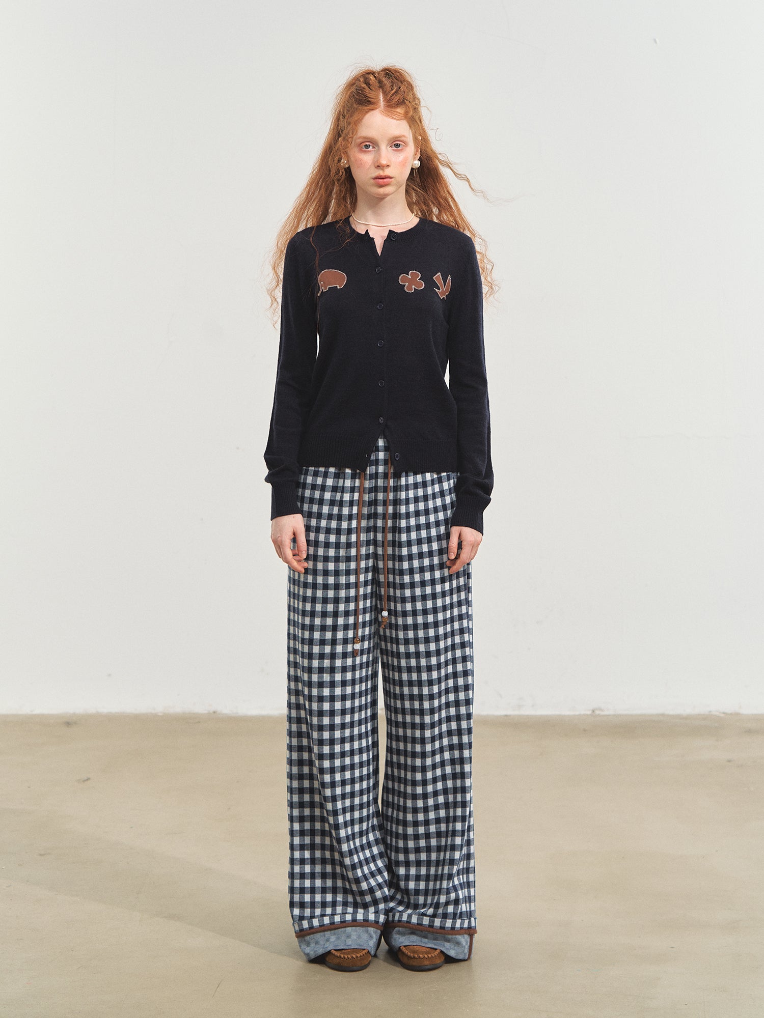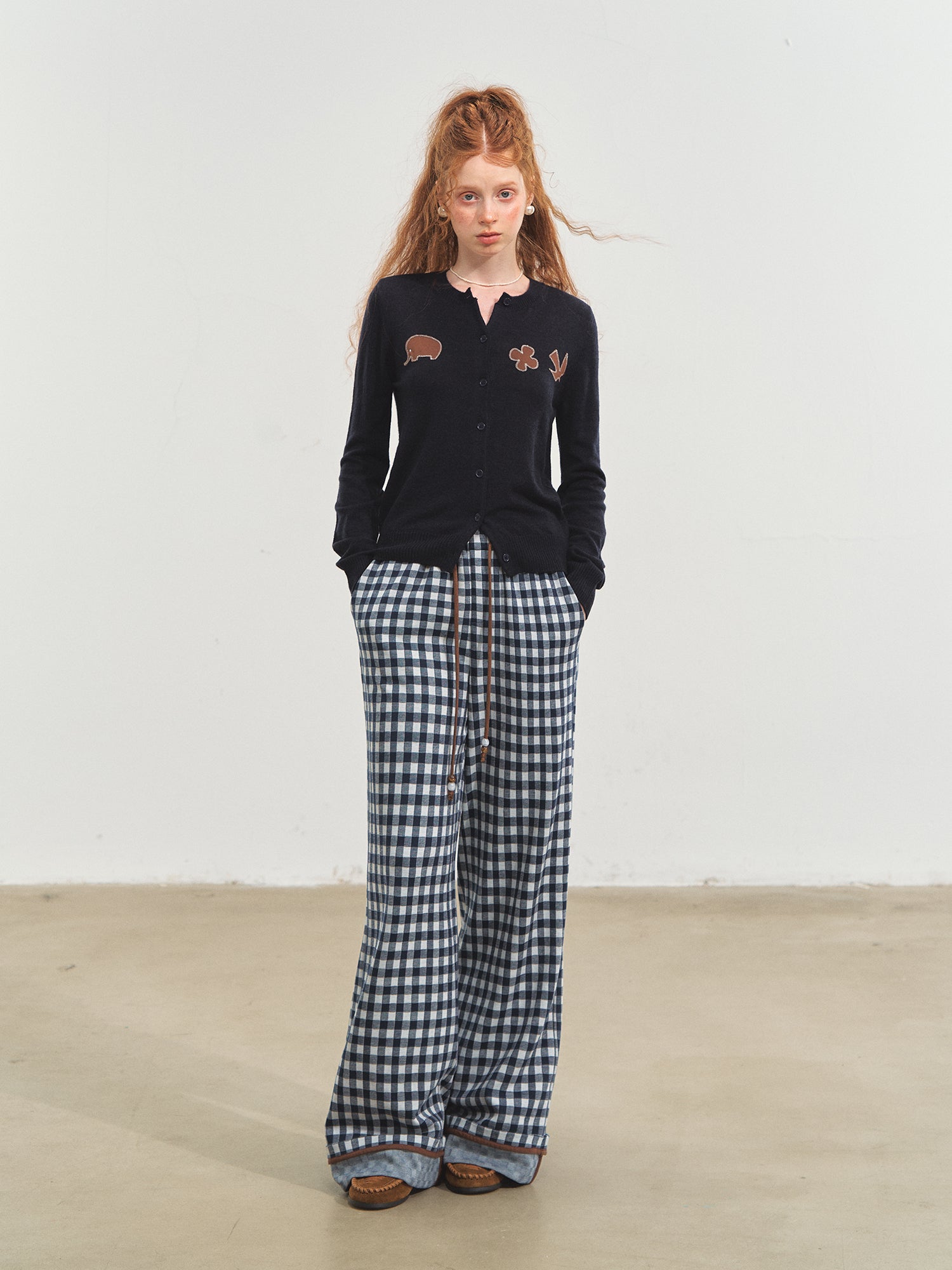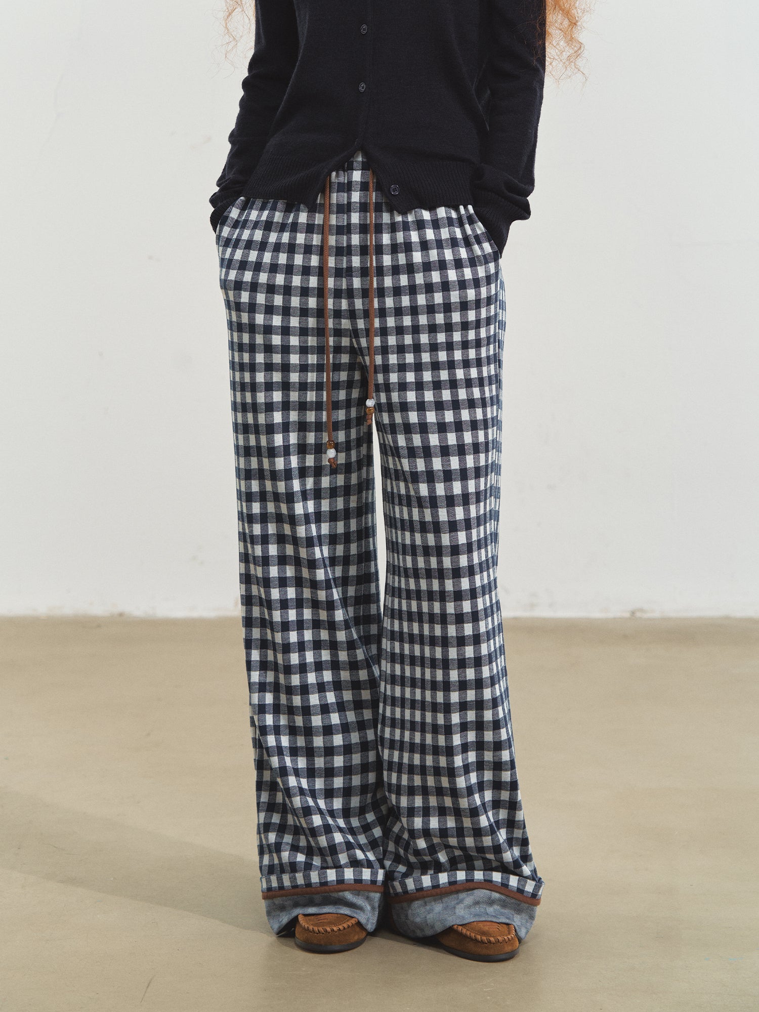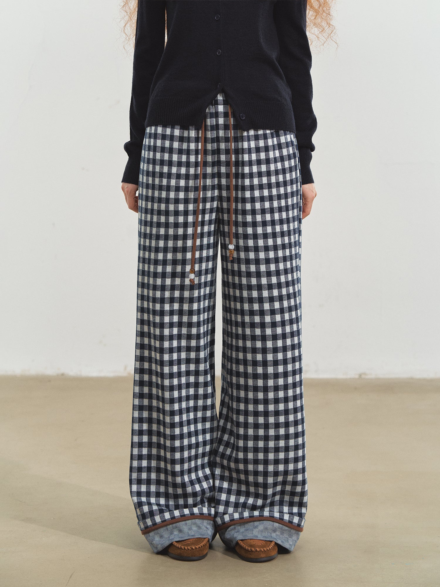 SOMESOWE 2510 棋盘格翻边阔腿长裤