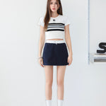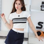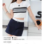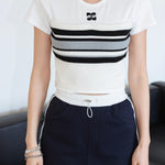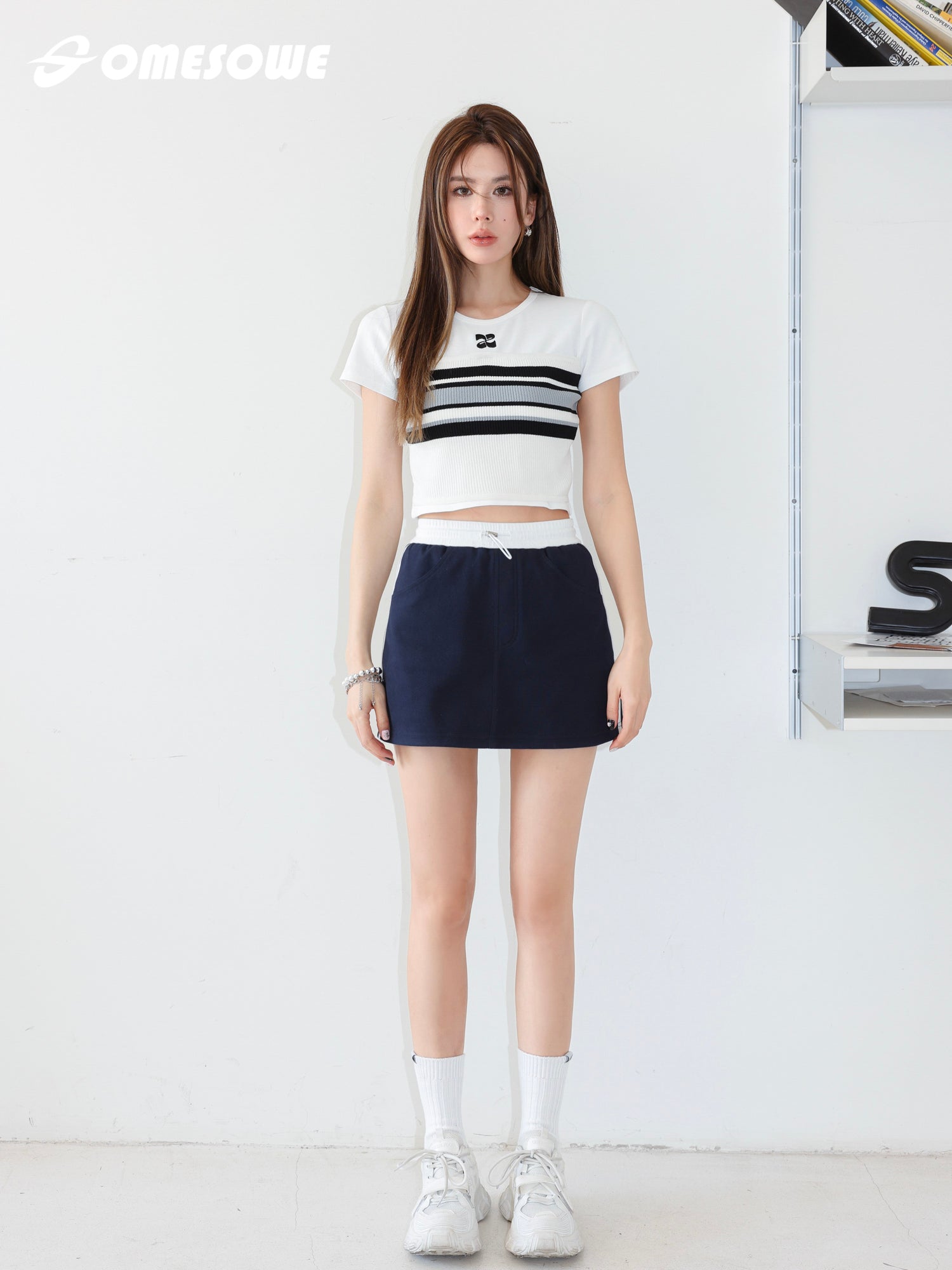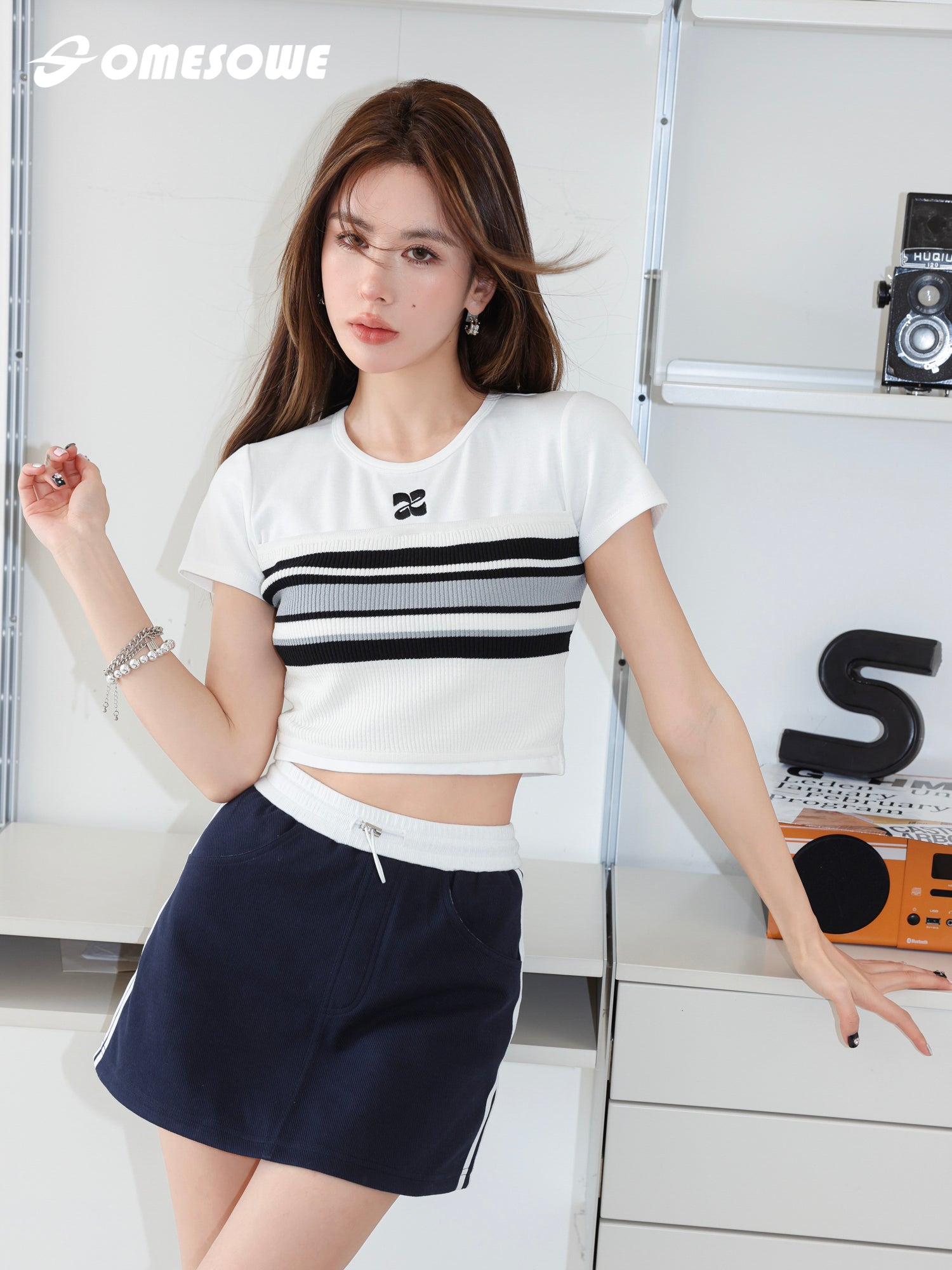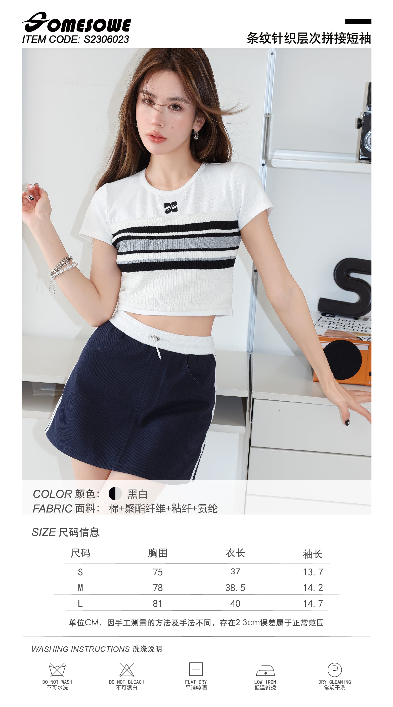 SOMESOWE SS2303 条纹针织层次拼接短袖