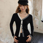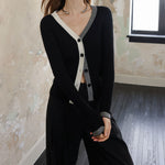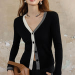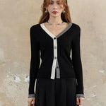 SOMESOWE SS2309 撞色V领修身羊毛针织衫 黑