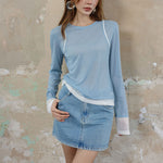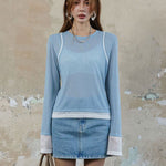 SOMESOWE SS2309 立褶拼接假两件拼色针织衫 蓝