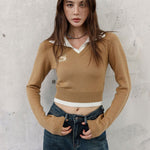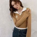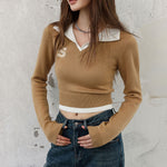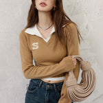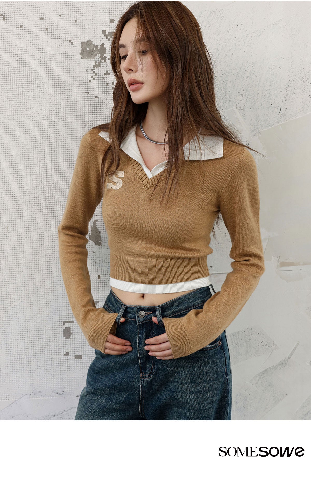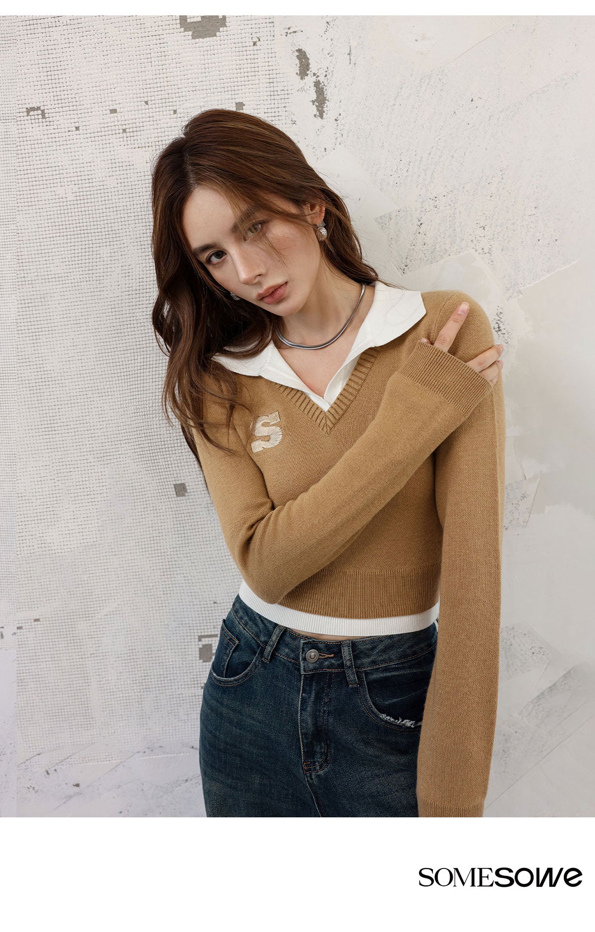 SOMESOWE SS2310 刺绣polo领撞色假两件针织衫 卡其