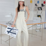 SOMESOWE SS2310 纯色肌理背带裤 白