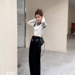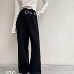 SOMESOWE SS2311 双腰头立裁中灰阔腿裤 黑