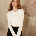 SOMESOWE SS2311 小V领发热打底T恤 白