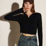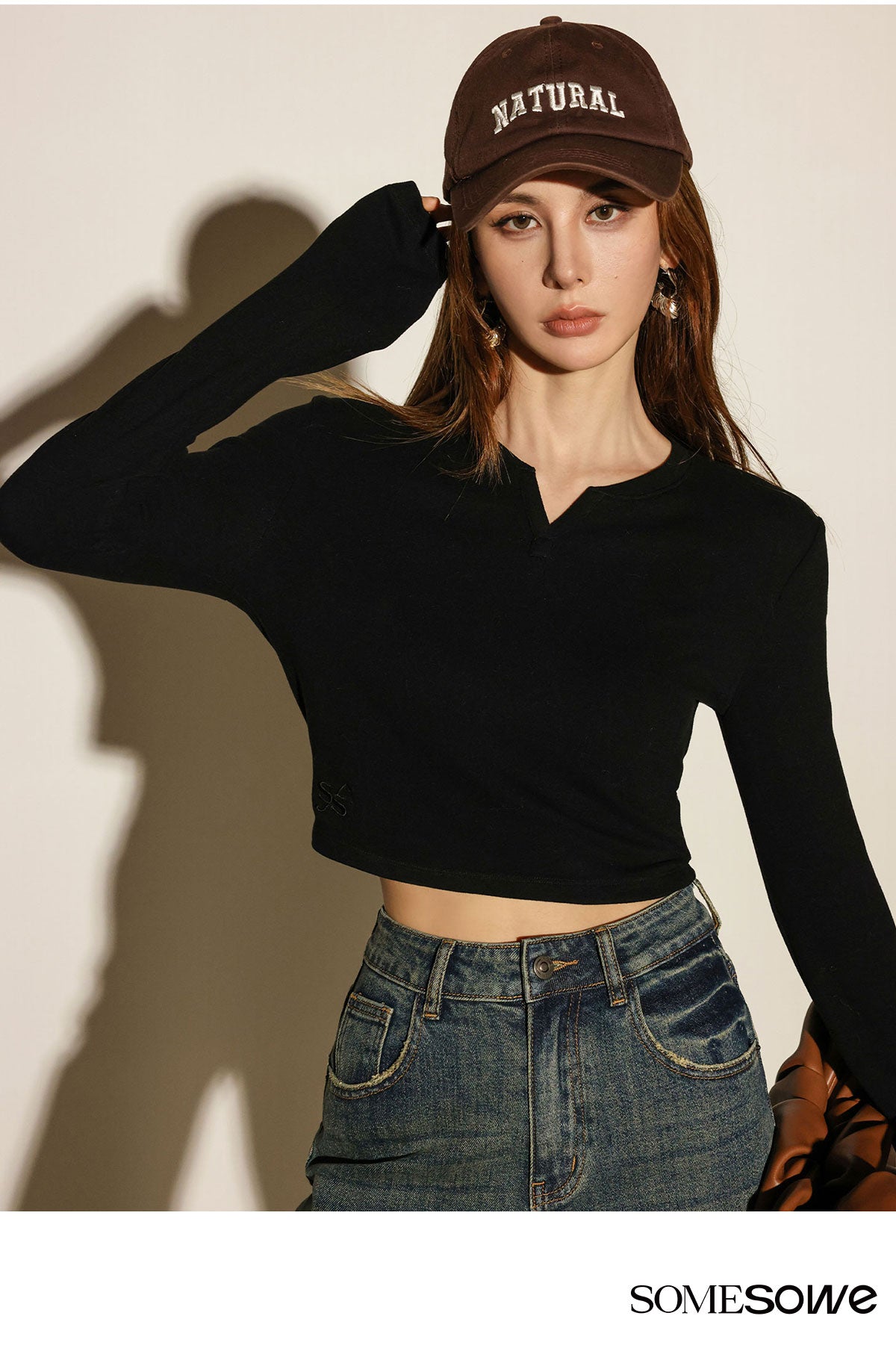 SOMESOWE SS2311 小V领发热打底T恤 黑