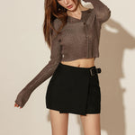 SOMESOWE SS2311 斜门襟坑条开衫 咖