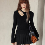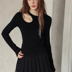 SOMESOWE SS2312 蓄热恒温镂空打底T恤 黑