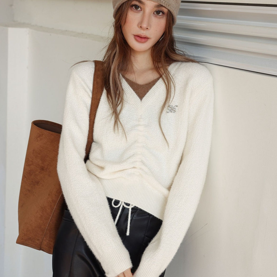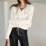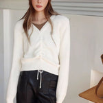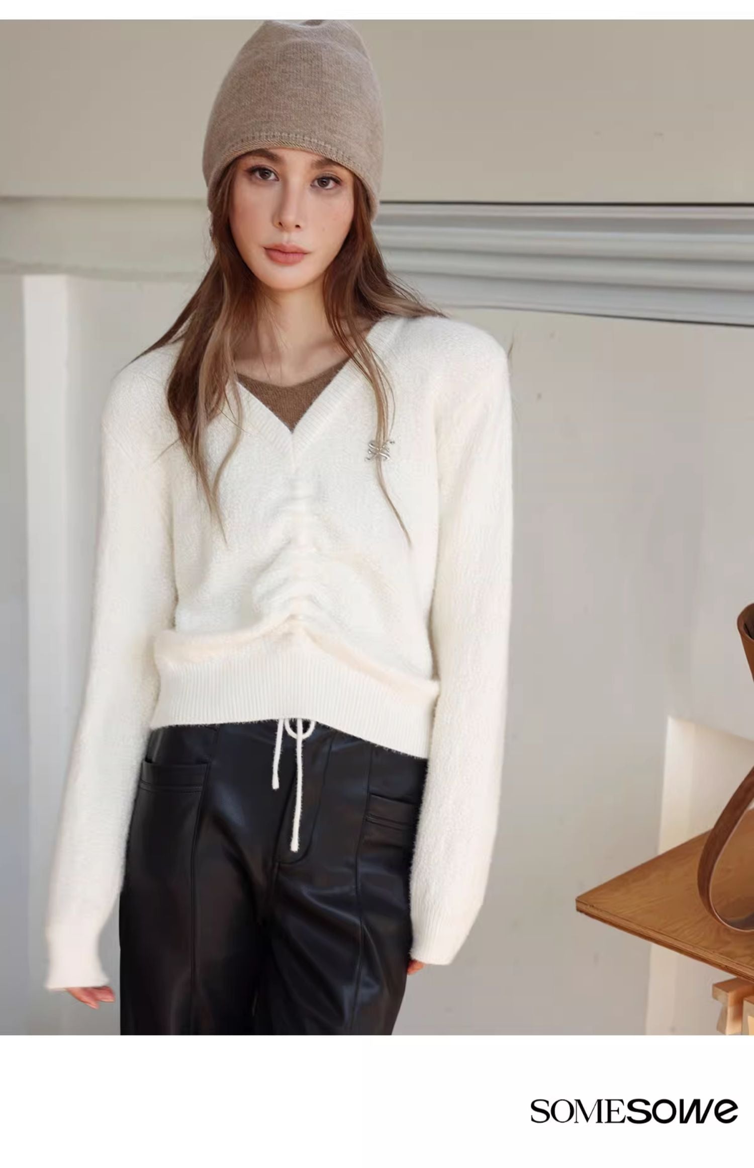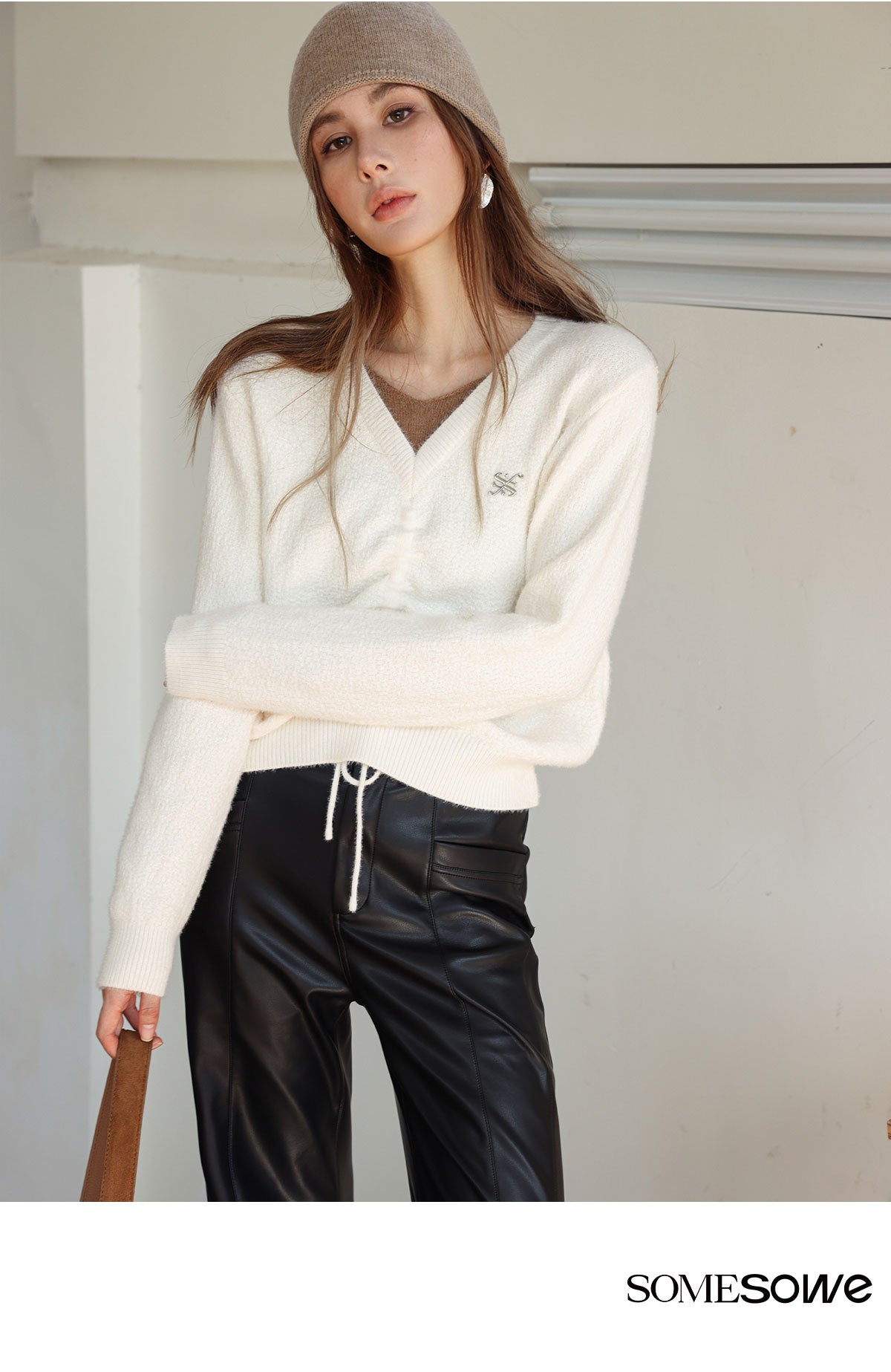 SOMESOWE SS2401 假两件抽绳针织上衣 白