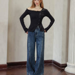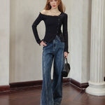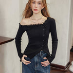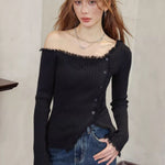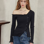 SOMESOWE SS2401 流苏斜肩坑条毛衣 黑
