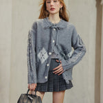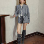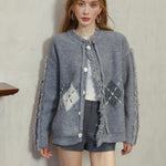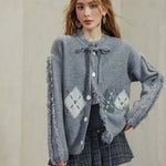 SOMESOWE SS2401 珠米线菱格流苏开衫 灰