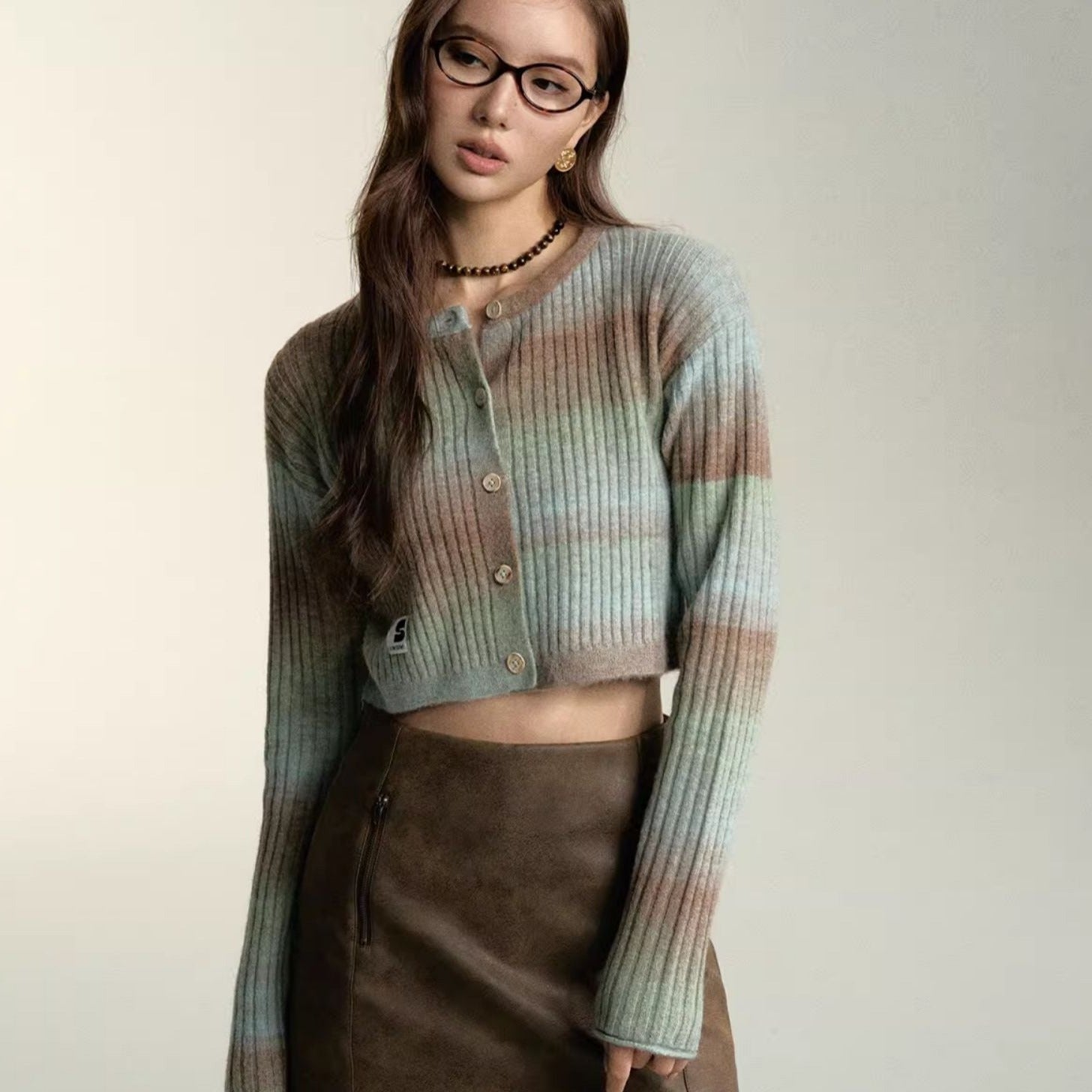 SOMESOWE SS2402 海岛落日渐变针织开衫 蓝