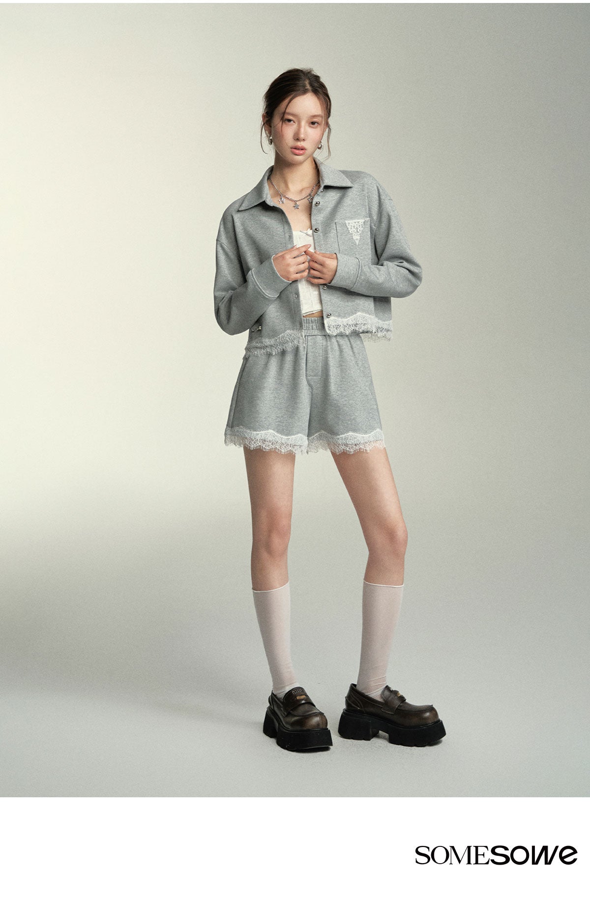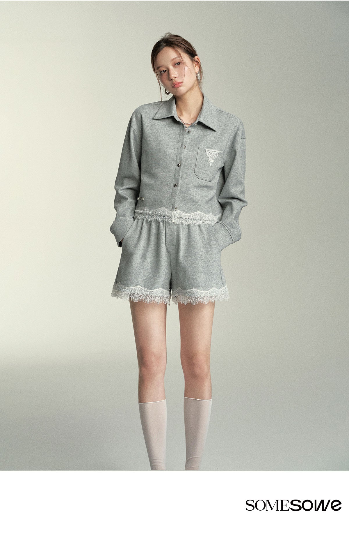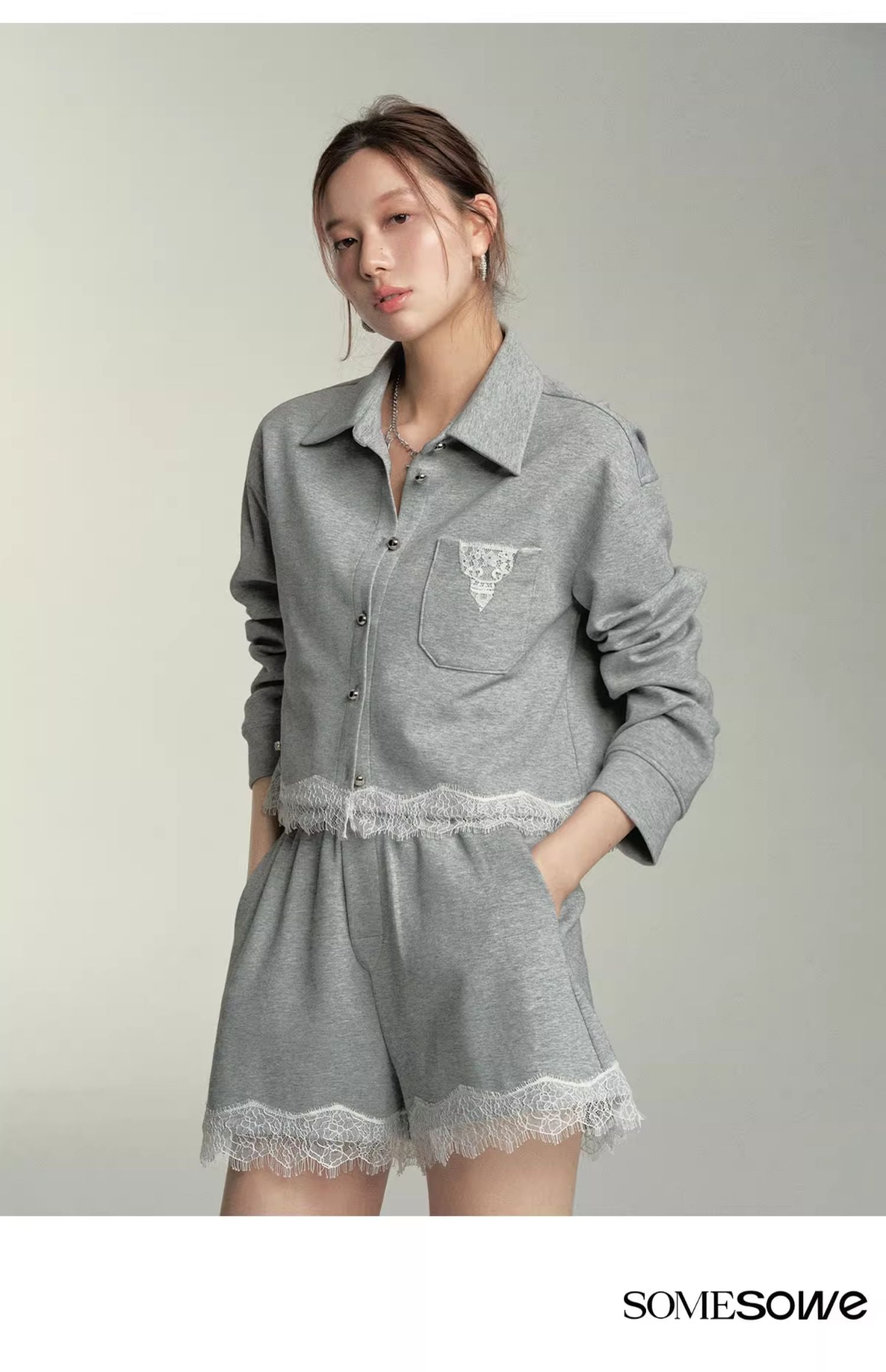 SOMESOWE SS2404 拼接蕾丝卫衣开衫