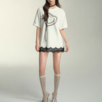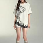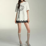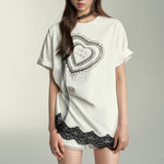 SOMESOWE SS2404 立体蕾丝爱心印花T恤 白