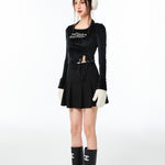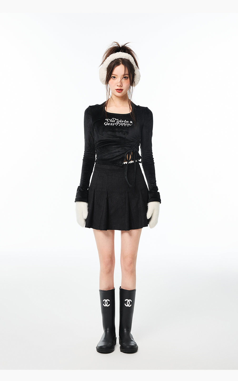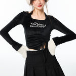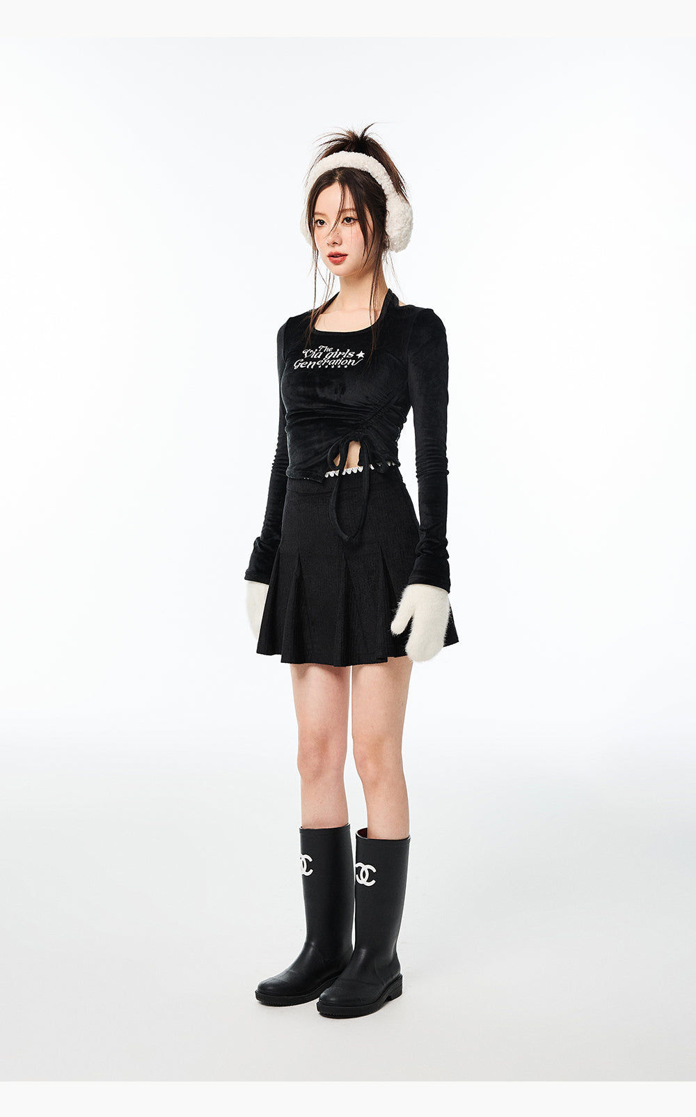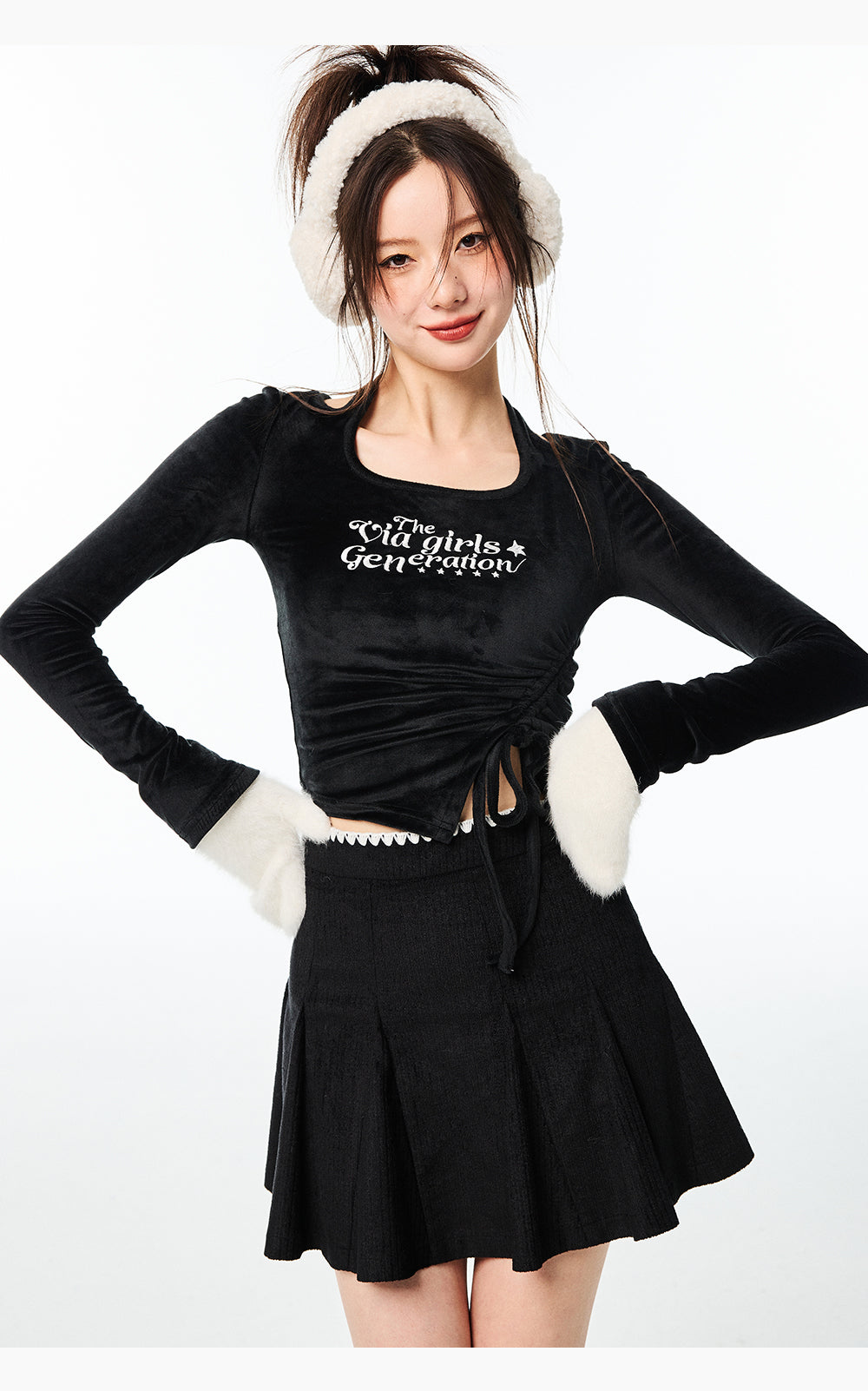Via Pitti 毛茸茸刺绣挂脖长袖T打底衫 黑