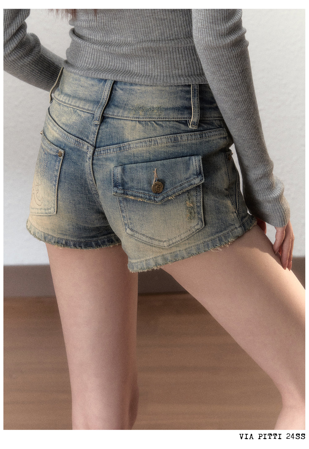 VIA PITTI 2405 水洗做旧短裤 复古蓝