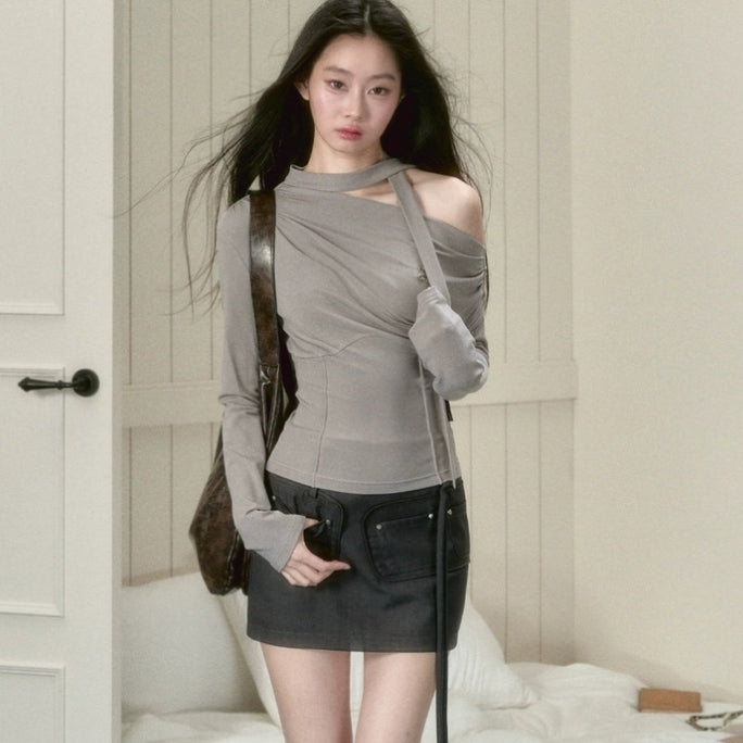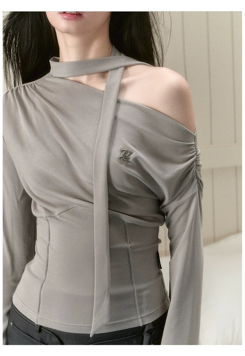 VIA PITTI 2409 斜肩设计感上衣 浅灰