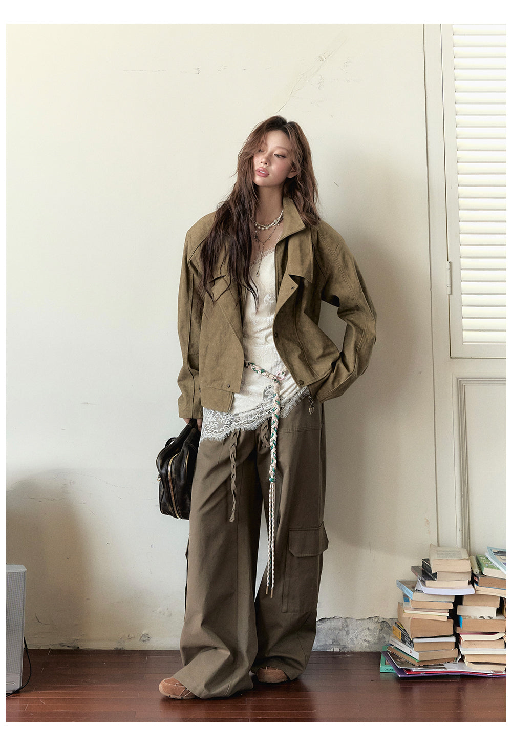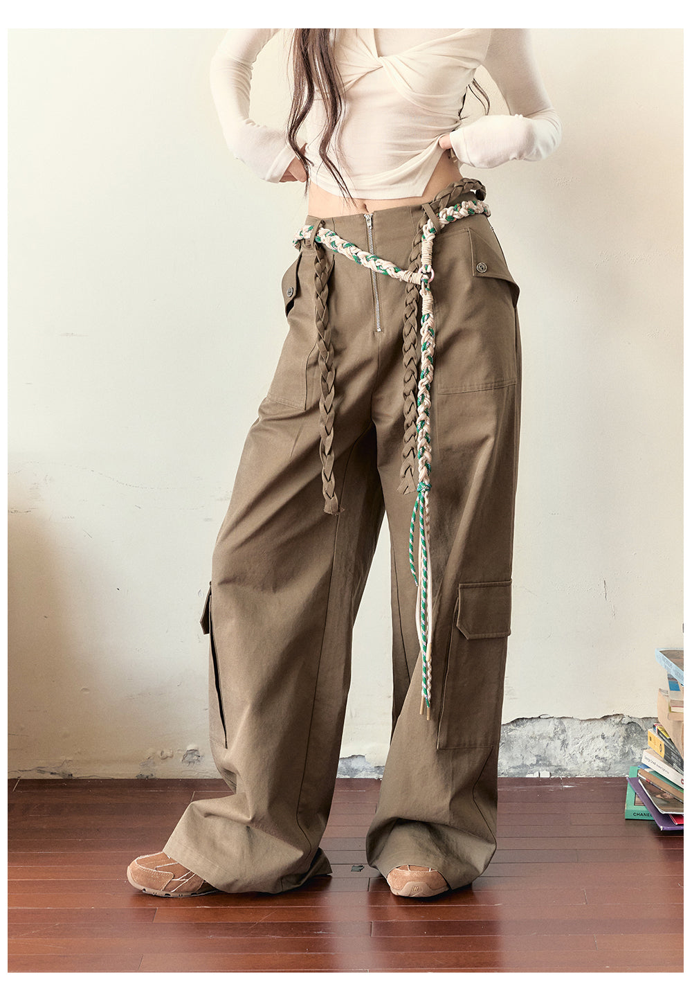 VIA PITTI 2410 编织腰带阔腿裤 卡其